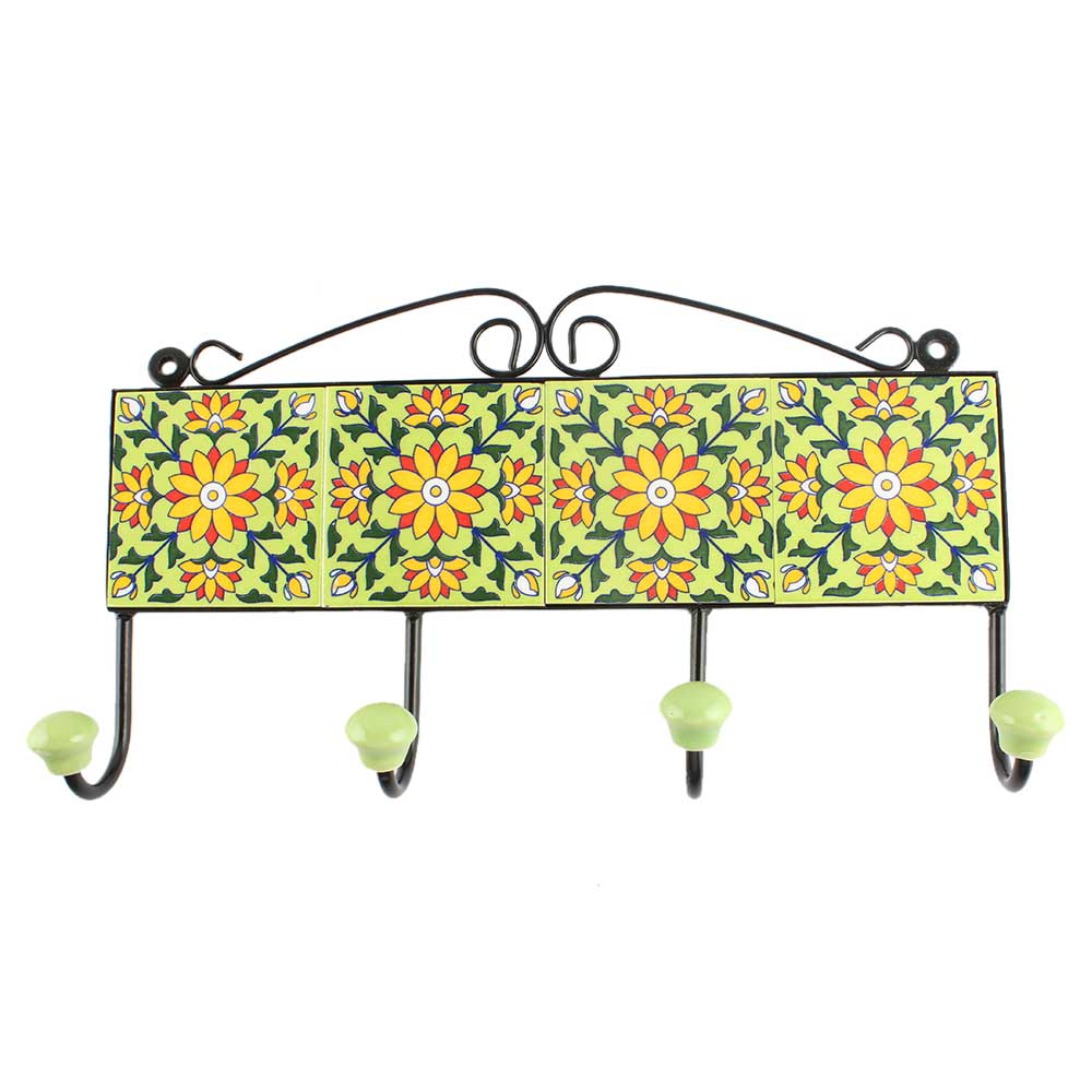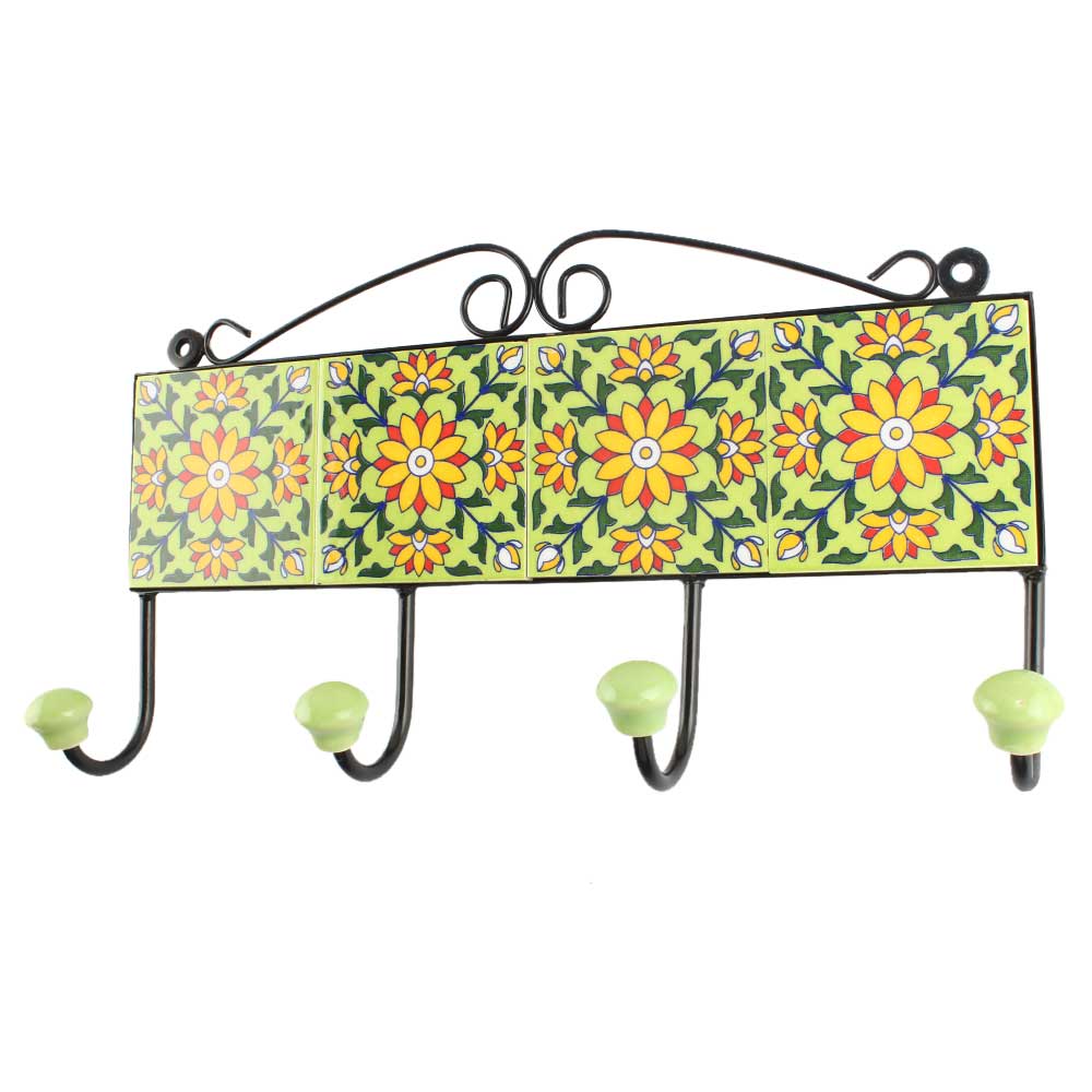 Sunflower Ceramic Tile Wall Hook in Pea Green