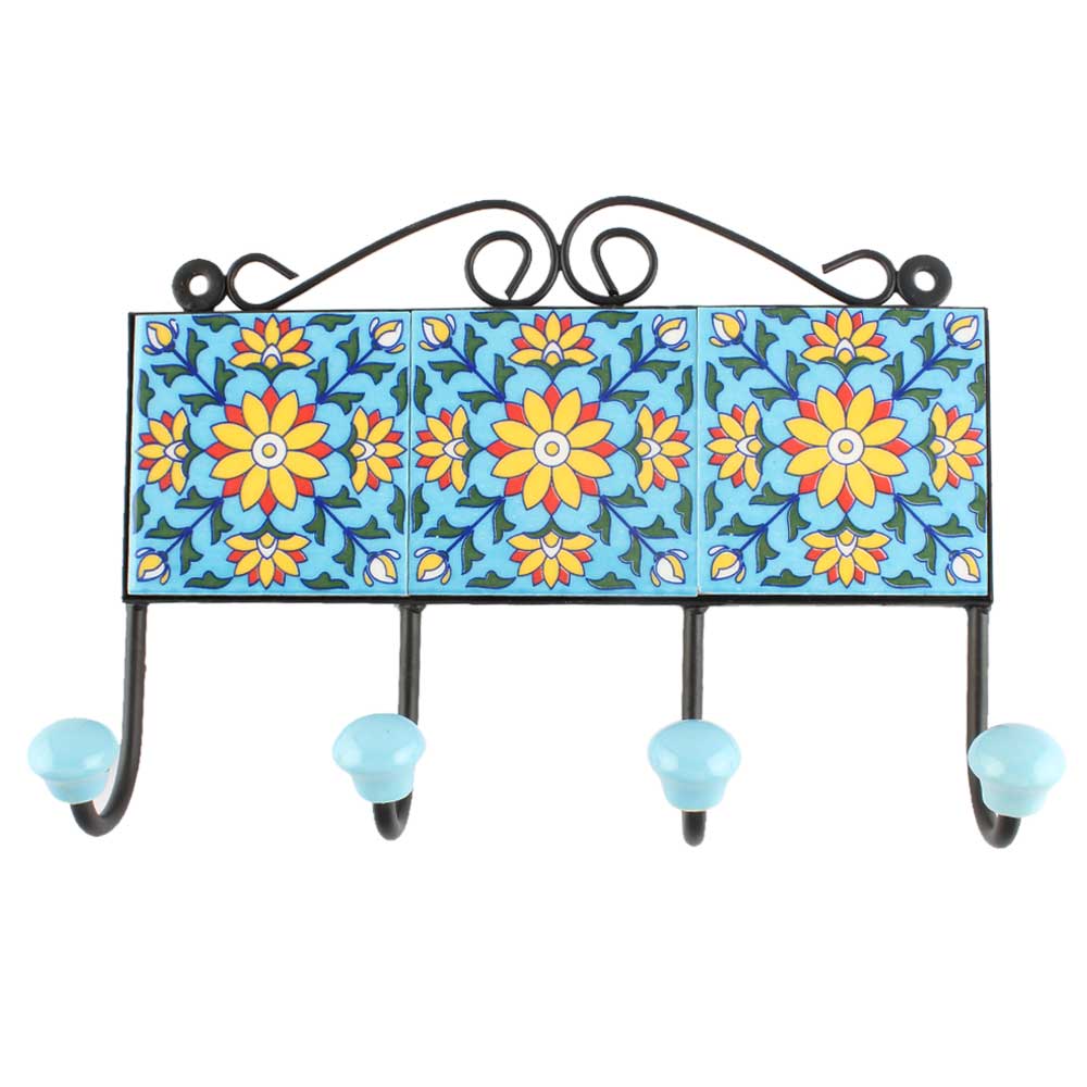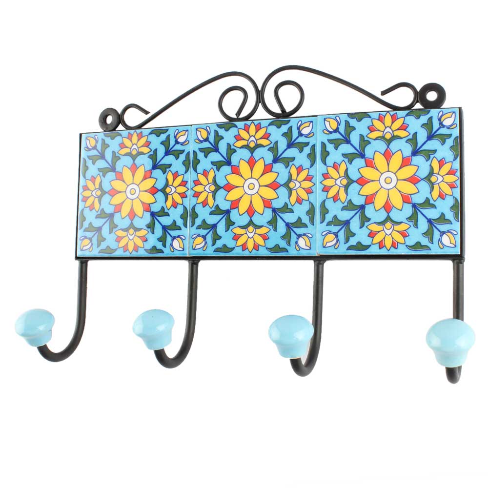 Sunflower Ceramic Tile Wall Hook in Yellow. When Put on Wall or Cabinet It is An Art in Itself. The Metal Part of this Hook is Black Powder Coated.