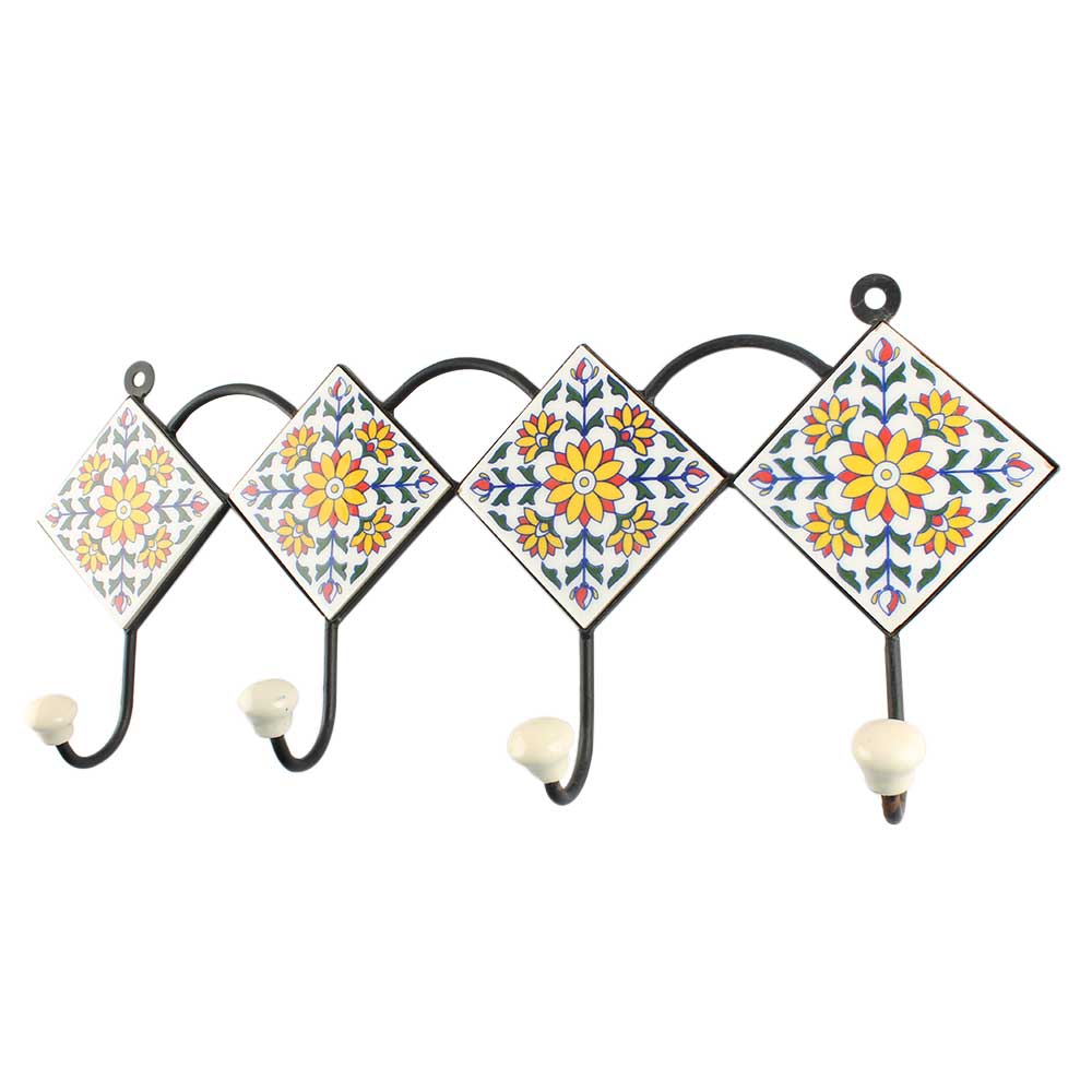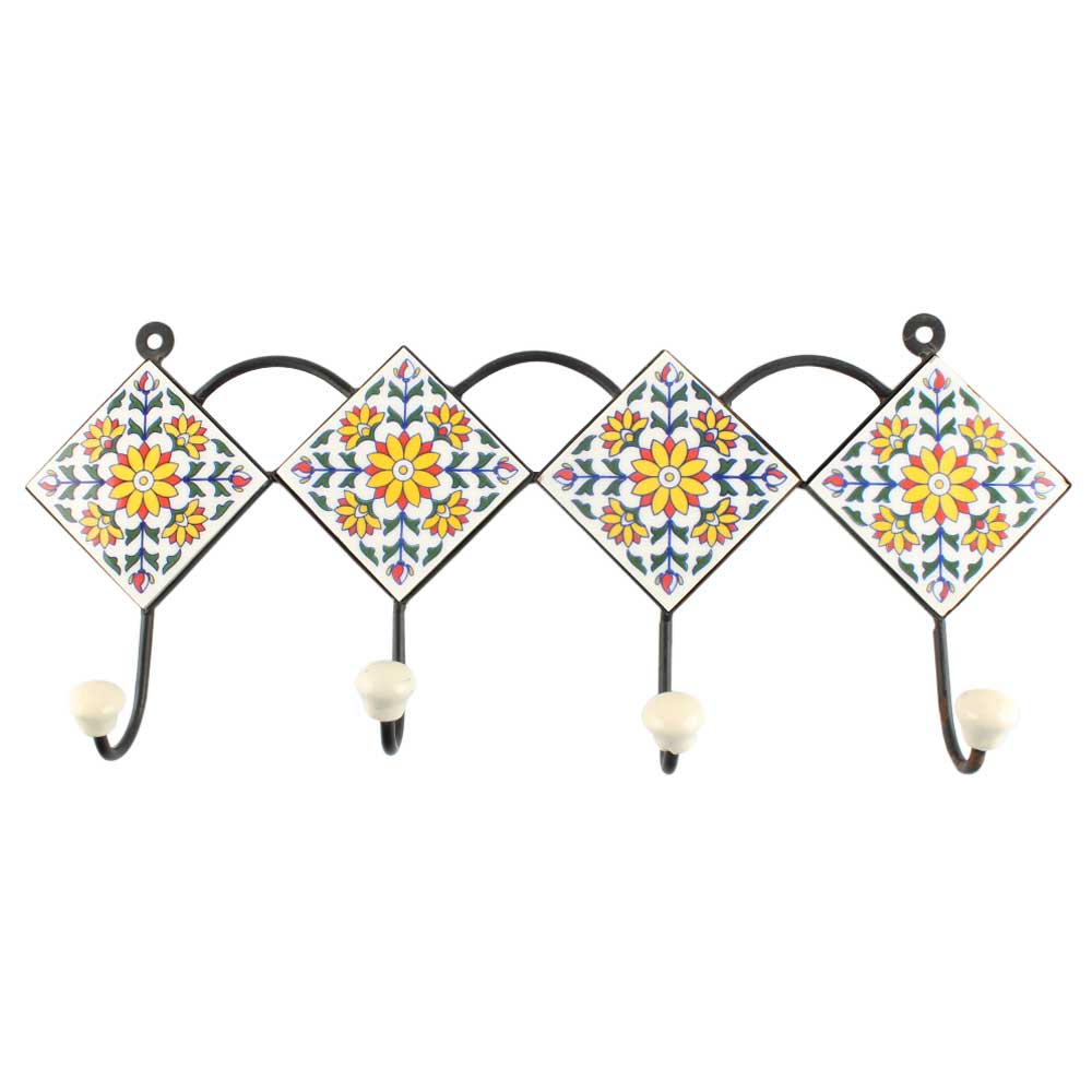 Sunflower Ceramic Tile Wall Hook Online. When Put on Wall or Cabinet It is An Art in Itself. The Metal Part of this Hook is Black Powder Coated.