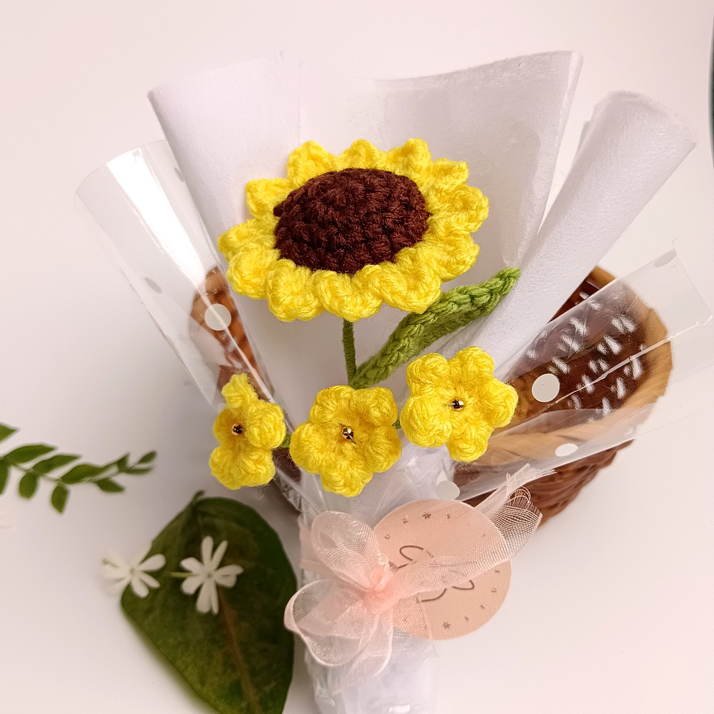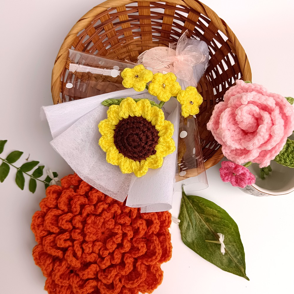 • Sunny Crochet Sunflower Posy Whimsical Yellow Tulle
