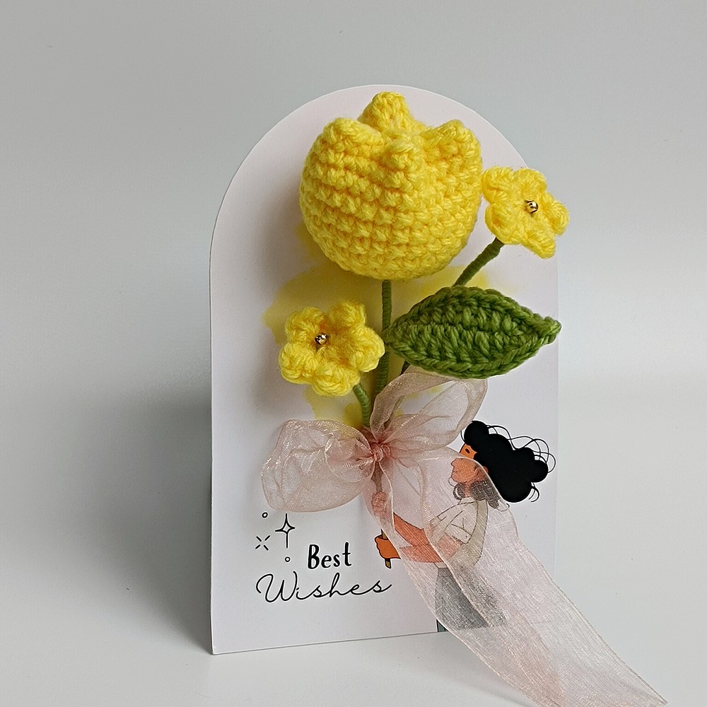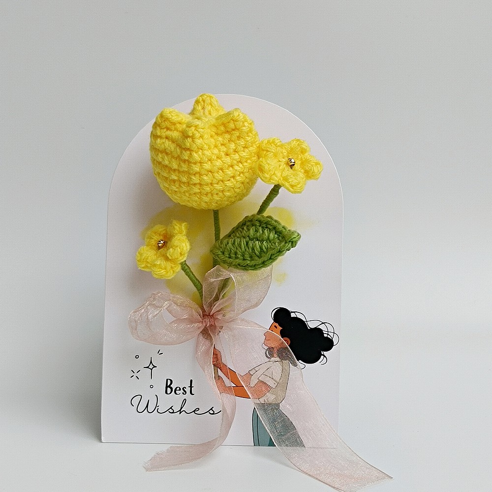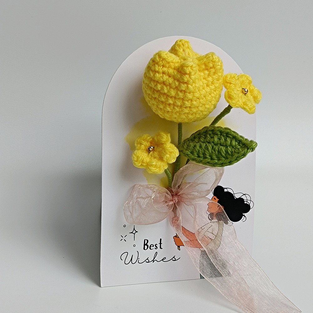 This yellow bloom is lovingly crafted from soft acrylic yarn, fibre filling and craft wire, offering a rich hue. Perfect for mindful gift buyers, it exudes hand-crafted charm and lasting appeal. Packed and quality-checked by Indianshelf. Each stitch is a testament to traditional artistry.