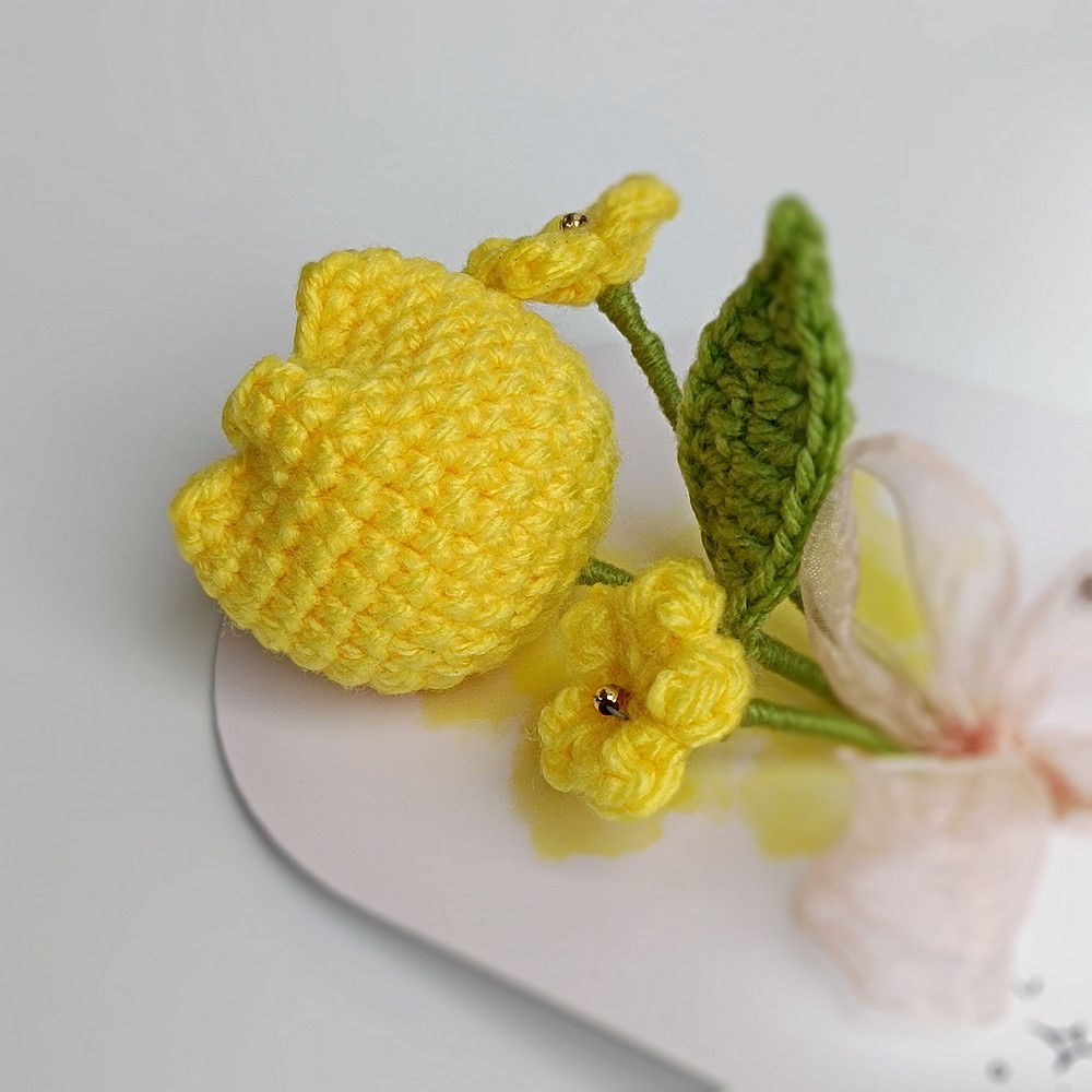 Sunny Yellow Crochet Tulip With Ivory Accent