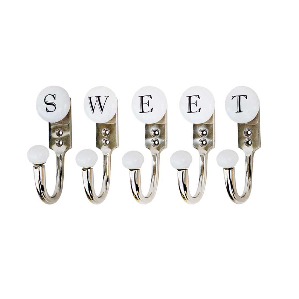 SWEET white and black alphabet hooks (combo pack). When put on wall or cabinet it is an art in itself. This hook is strong enough to hold your keys, tea cups, hand towels, cloths etc.