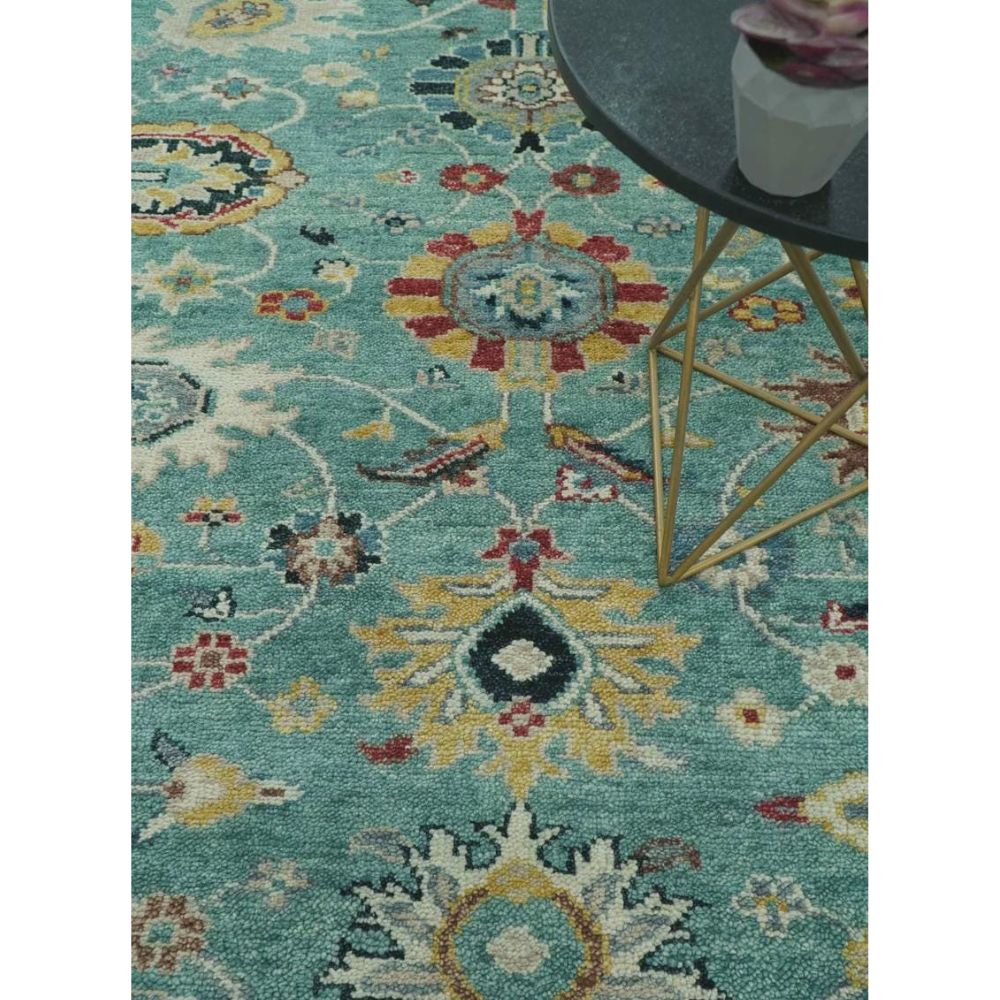 • Teal And Yellow Modern Oushak Wool Rug