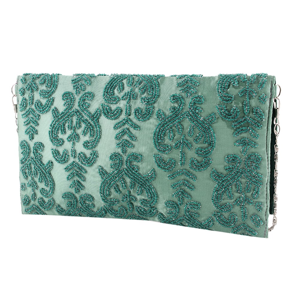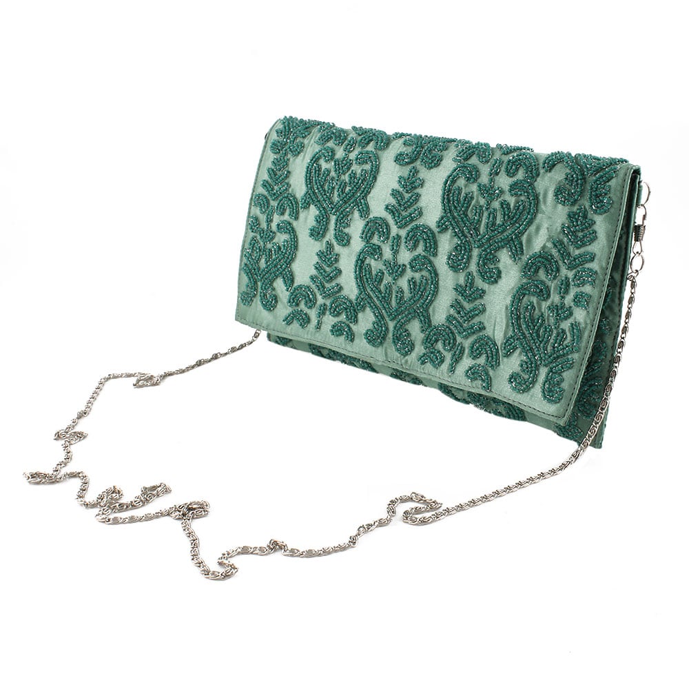 This is a beautiful designer clutch with embroidery on front and back side. It gives you a classy look. This gorgeous clutch bag looks graceful and is extremely lightweight to carry.