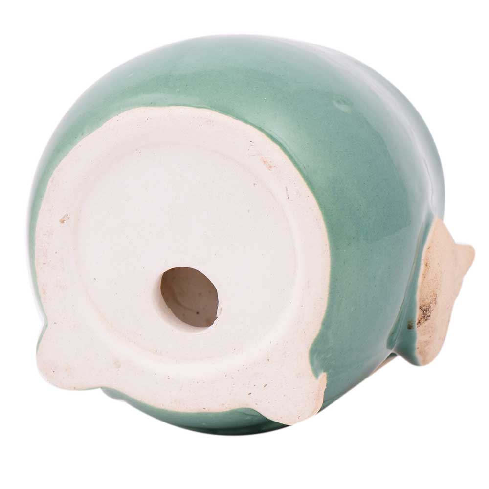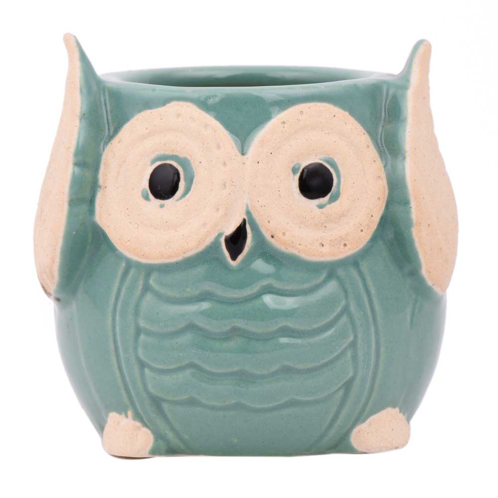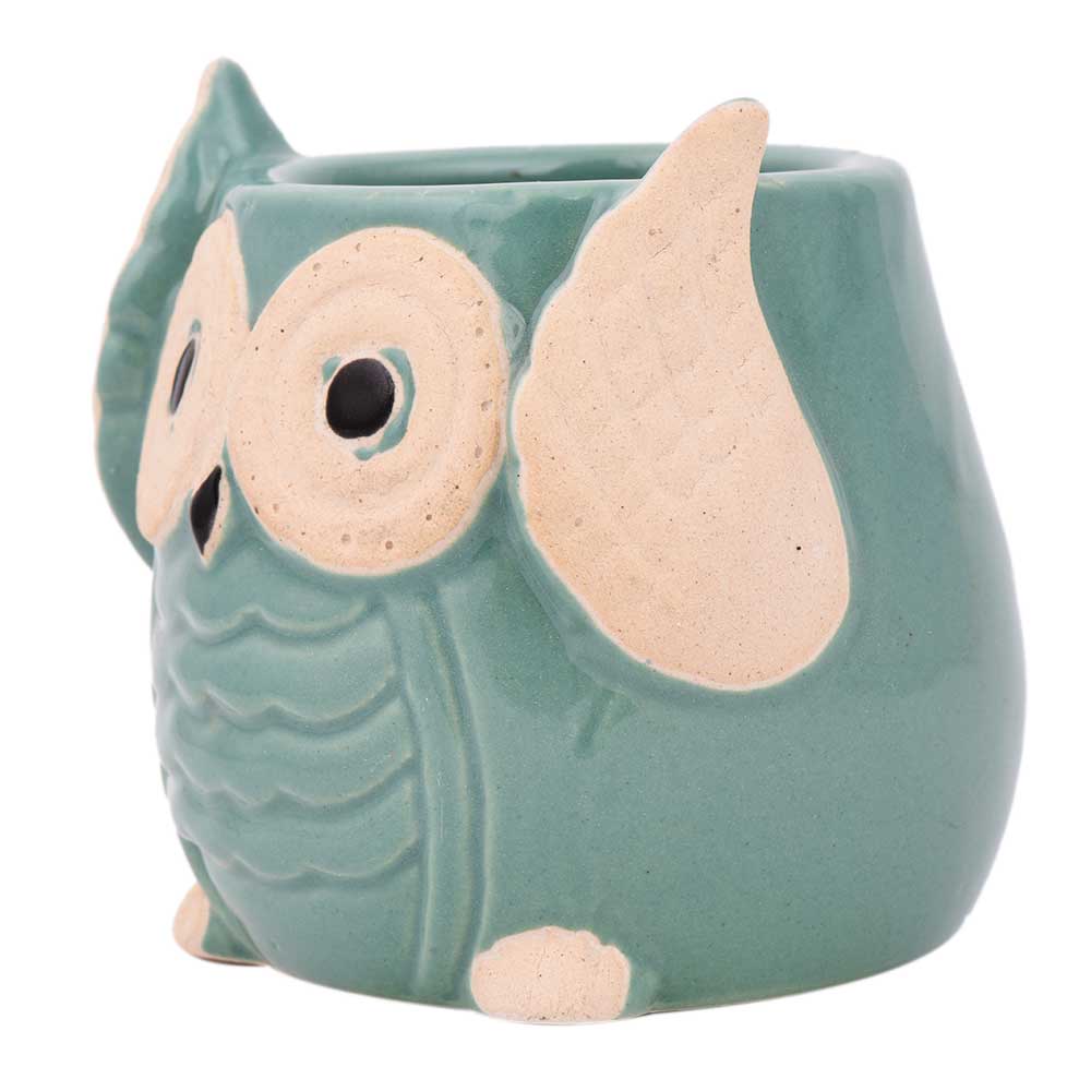 • Teal Blue Painted Owl Ceramic Pot Planter