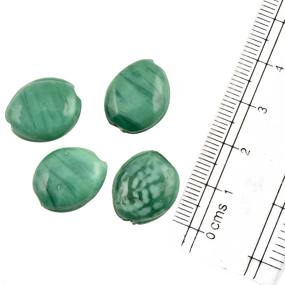 Teal Green Color Jewelry Oval Shape Loose Glass Beads (Pack Of 12)
