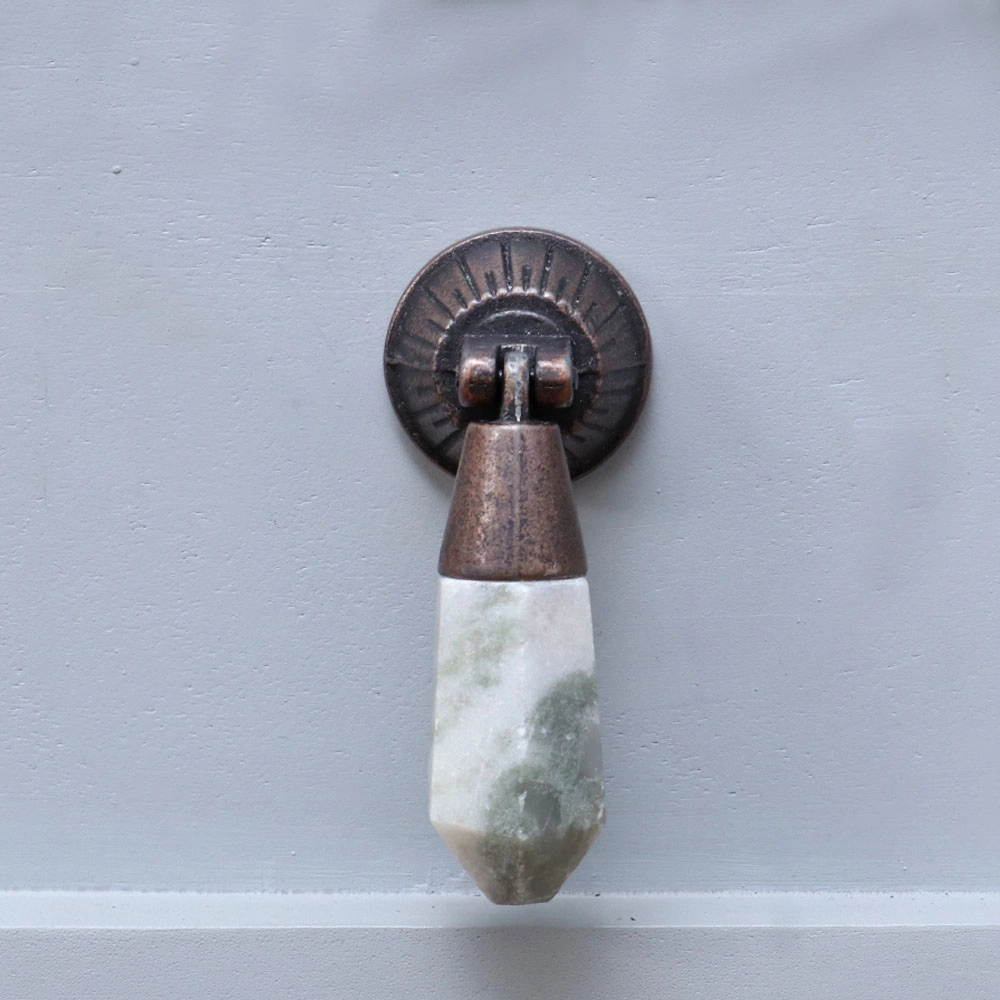 This Stone and Metal Knob in a captivating grey and brown finish is meticulously handcrafted by talented Indian artisans. Elevate the aesthetics of your living space with this exquisite knob that effortlessly combines the timeless beauty of stone and the durability of metal. Each knob is a testament to the artistry and precision of our artisans, who painstakingly shape and assemble the components to create a truly unique piece. Its grey and brown finish exudes a sense of rustic charm, making it a versatile addition to your furniture. This knob is not just a functional accessory but also a statement of elegance. It's perfect for your drawers, dressers, cabinets, wardrobes, and cupboards, instantly transforming them into objects of desire. Moreover, it serves as an ideal gift for your loved ones on special or festive occasions, encapsulating the essence of Indian craftsmanship and tradition.