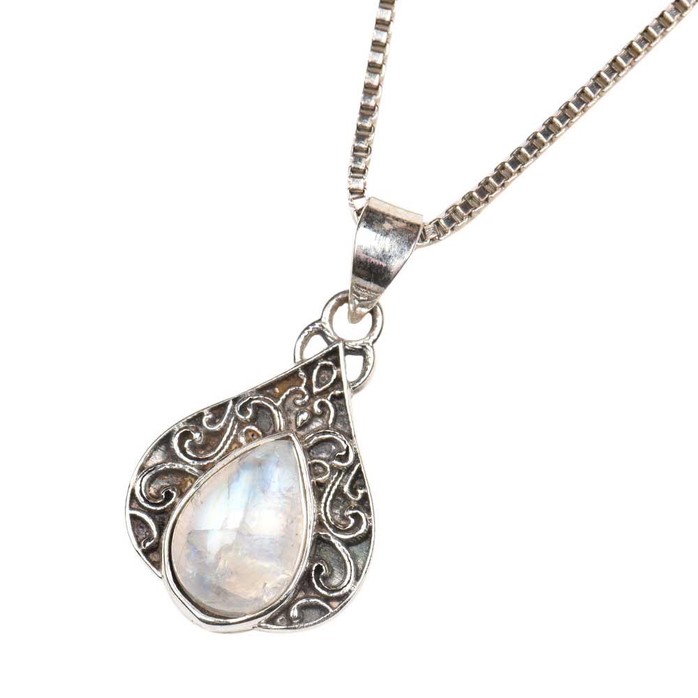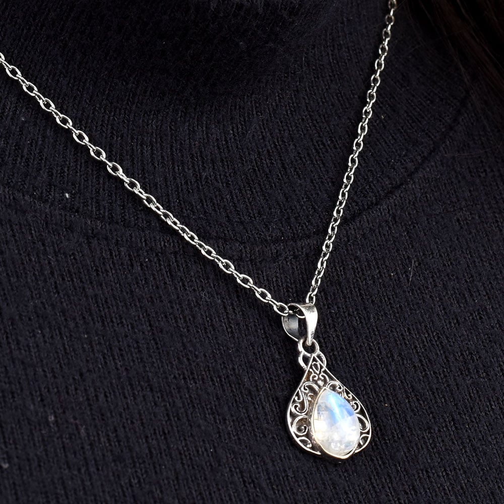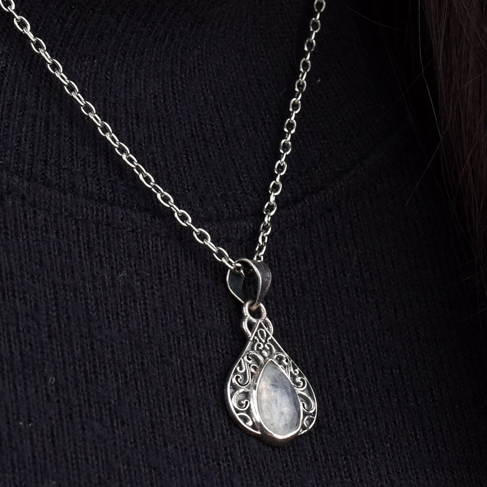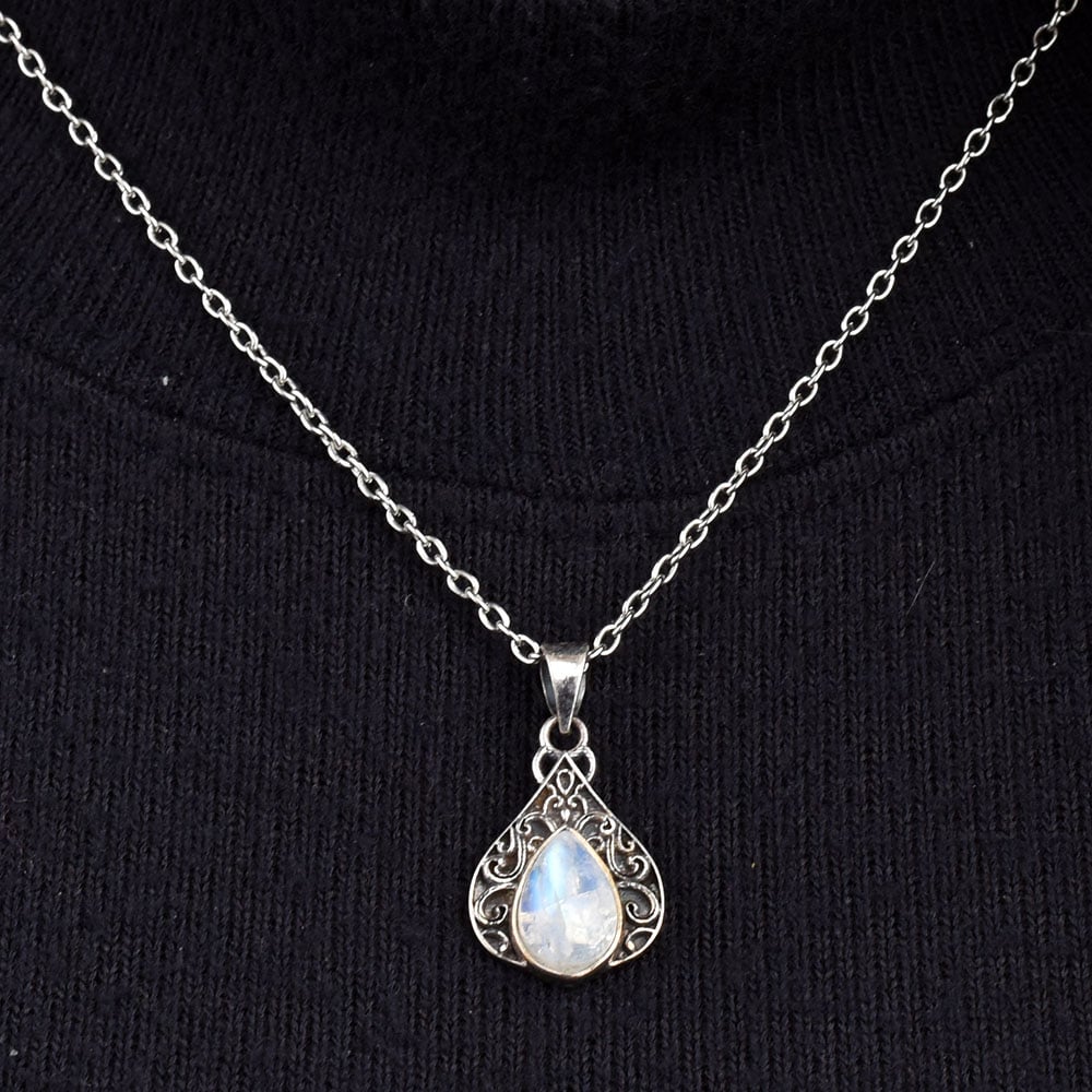 • Teardrop Moonstone Embedded 92.5 Sterling Silver Pendant Jewelry