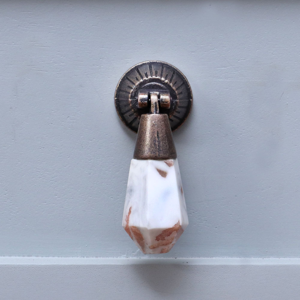 The Teardrop Stone and Metal Knob is not only for your living areas but is also a stylish addition to your bathroom and bedroom furniture. It is the ideal knob for cabinets and cupboards in the bedroom or the bathroom, giving your space a more luxurious, modern feel.