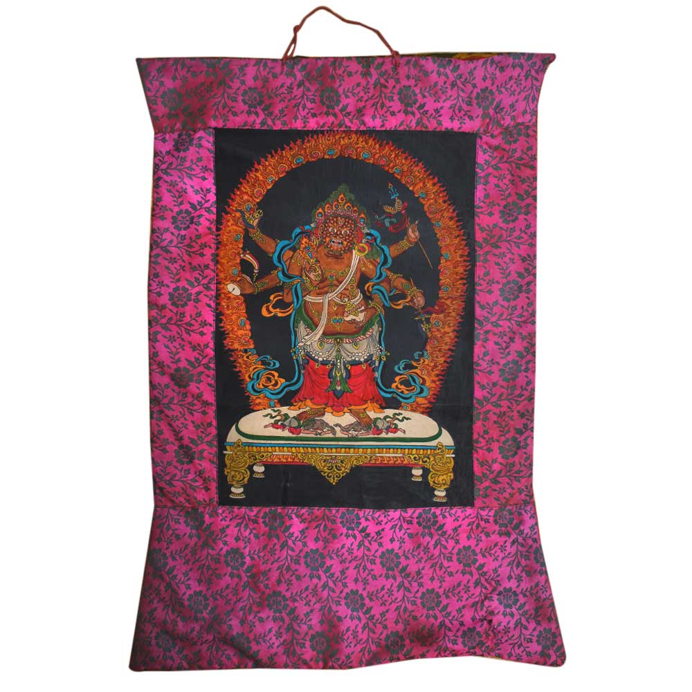 The Six-armed Mahakala, a rageful manifestation of the Great Compassionate One, Arya Avalokiteshvara, a dharmapala whose transmissions originates with the Indian Mahasiddha Shavaripa, is the specific guardian of the Shangpa Kagyu school and its followers. Ideal for yoga and meditation studios, workplaces, stores and residences
