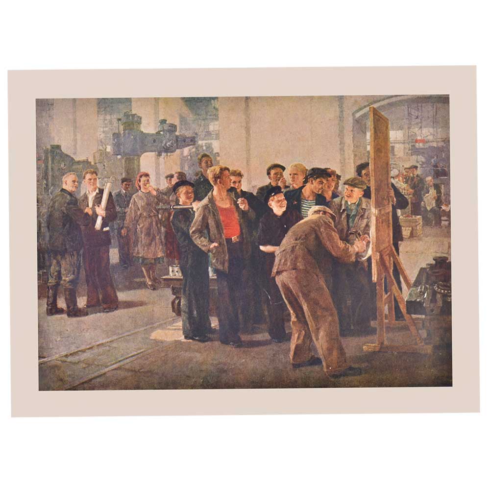 In its making, this painting has the warmth and the moistness, if not the butteriness, of the light; the different weight and tactile force of the colours, shifting from soft and yielding through to hard-edged; the lovely, almost seemingly effortless, manipulation of perspective; and the way he has organized objects and people within the space of the painting . The poster shows an artist showcasing his skills in front of a large audience.