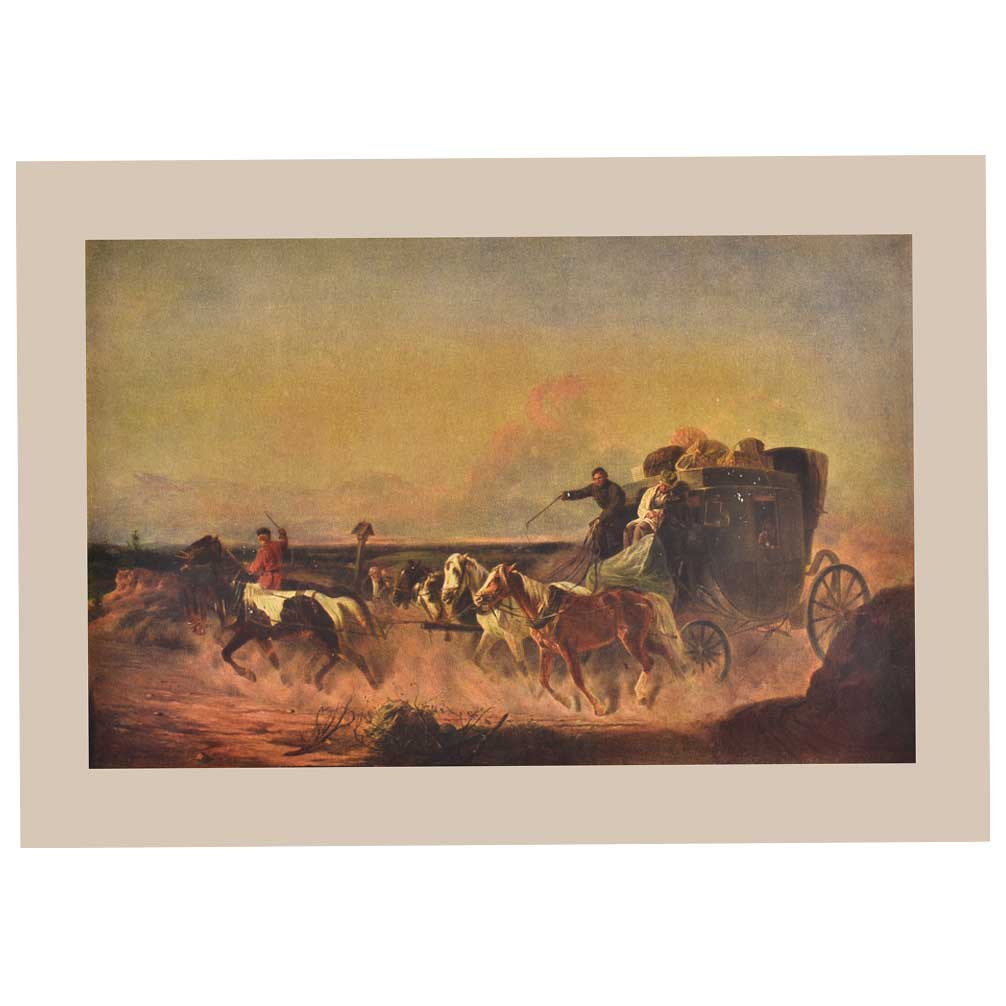 The lithography shows a Landlord in a Speeding Coach with horses Horses runnig and galloping in an open field. It is a beautiful home decor product frame it and display it in your living room or gift it to your near and dear ones .
