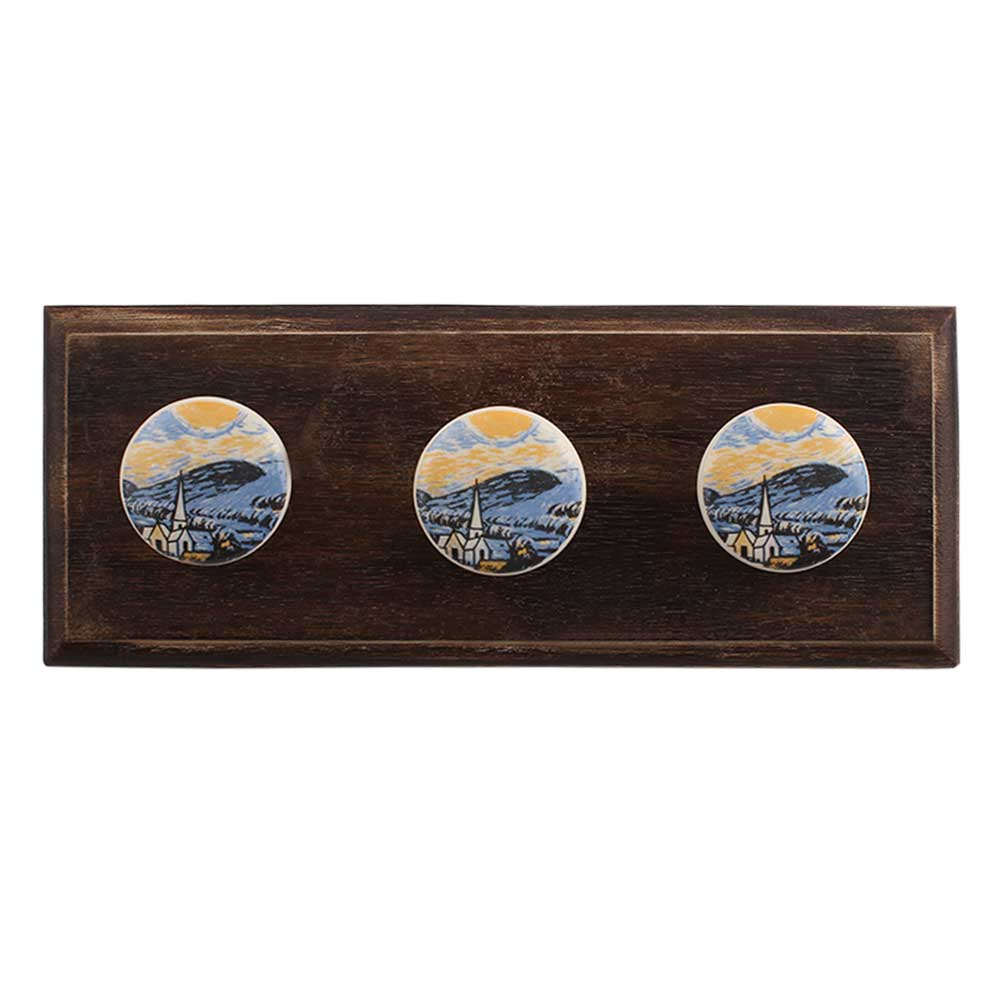 The Starry Night Multicolor Ceramic Wooden Hook. A Perfect Complement to the Soft Tone of the Wood are these White Traditional Hat Coat Hook Made of Genuine Porcelain and Brass. It can be use to Hang Jewellery, Leashes, Towels, Scarves, Light Weight Sweaters, Caps Etc.