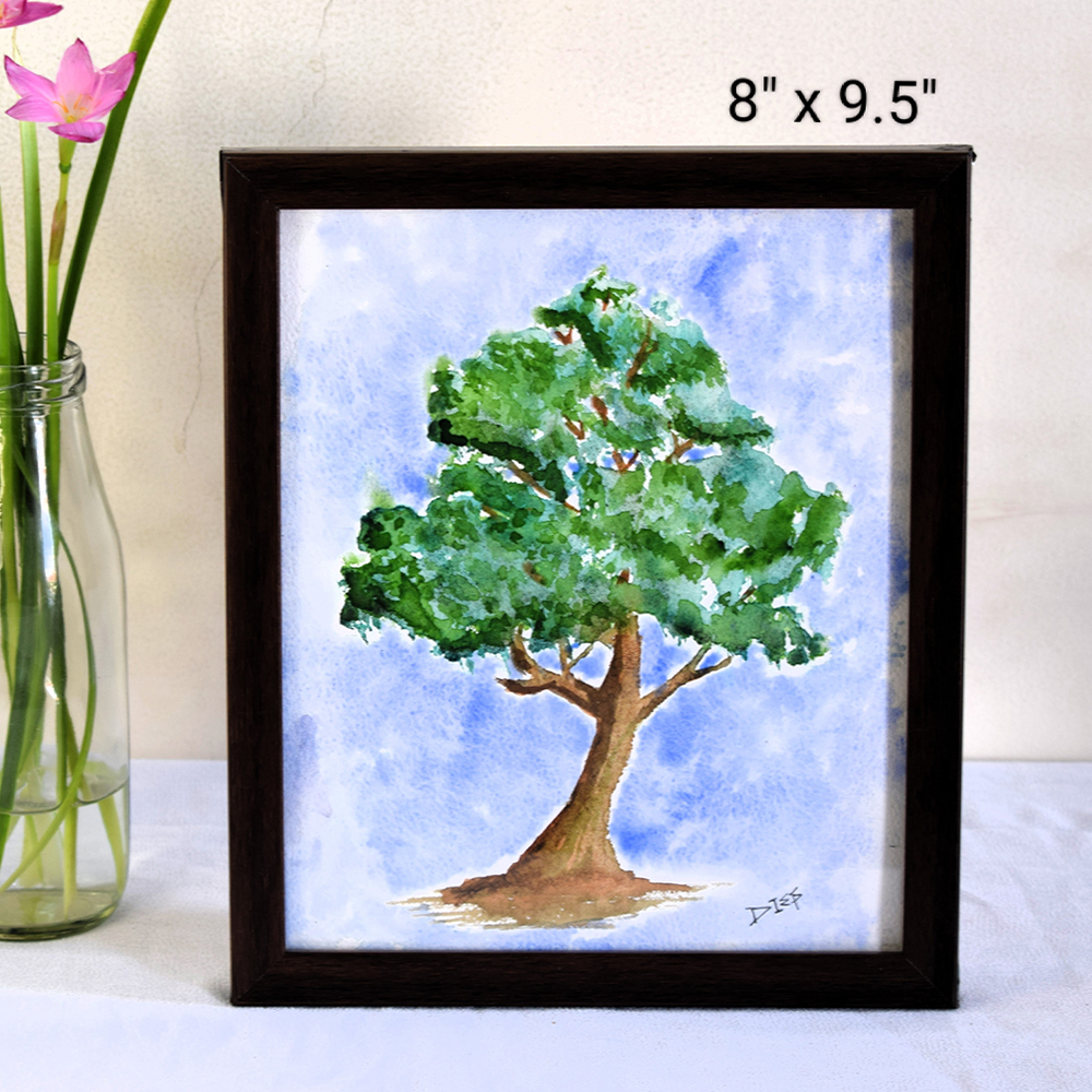 The Tree Watercolor Nature Study on Paper by Artist Dimpana |8 x 9.5Inches