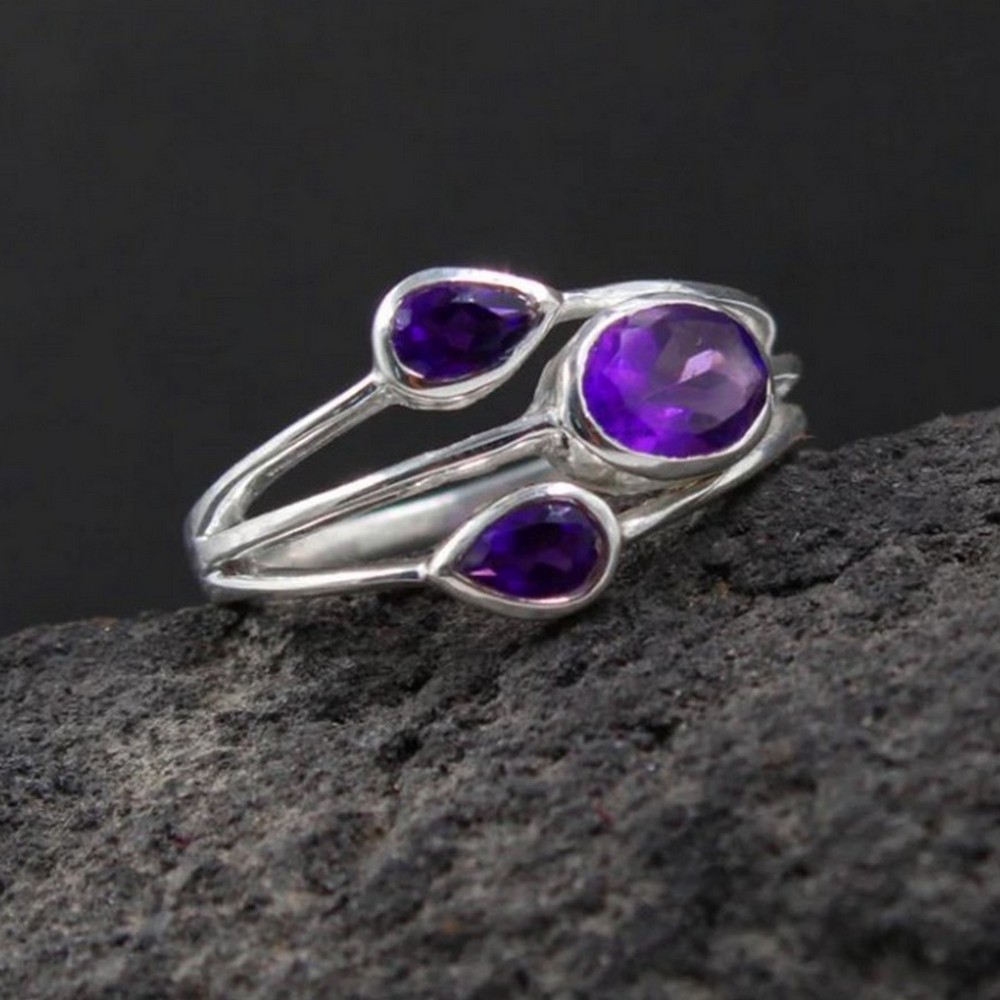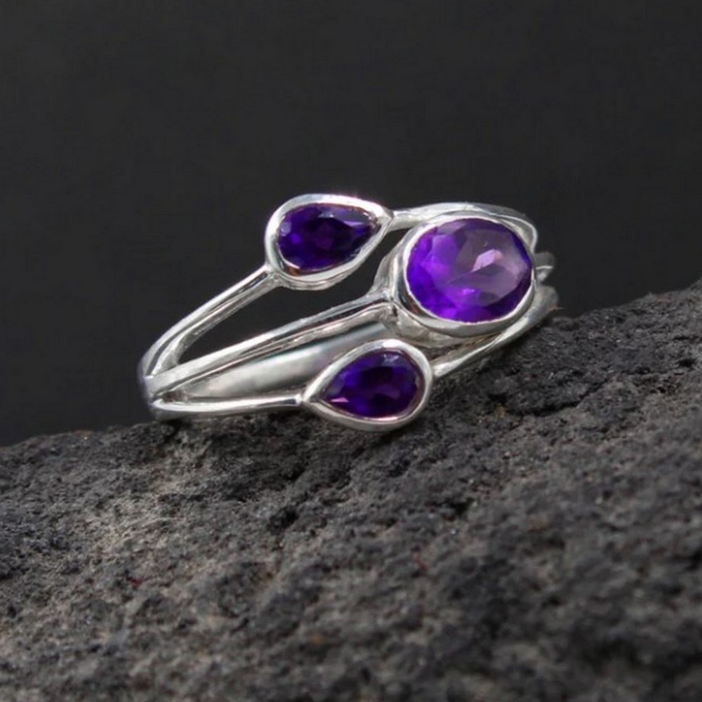 Indulge in the allure of our three amethyst 925 sterling silver ring handmade boho jewelry, where three natural amethyst stones, 925 sterling silver and boho come together to create a healing energy. This ring is for spiritual seekers, each piece reflecting individuality and care. Packed & quality-checked by Indianshelf.