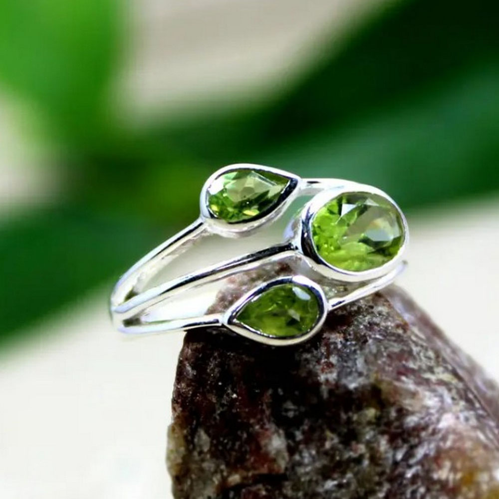 Versatile Uses of Three Natural Peridot Stones Boho Ring