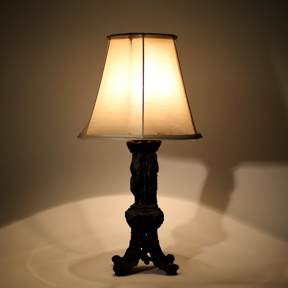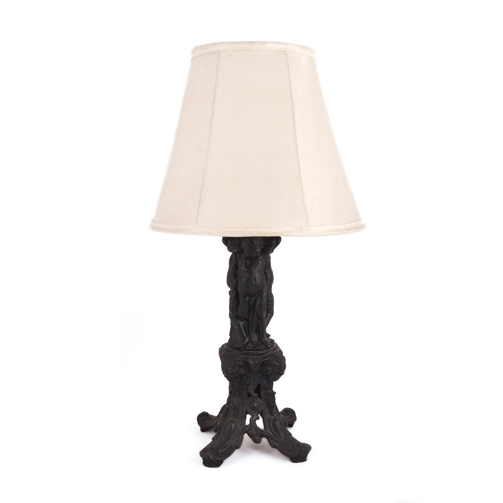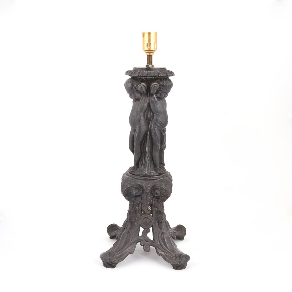 Three cherub or solemn children sculpture table lamp. The lamp is unique and allows a great lighting option for any room.