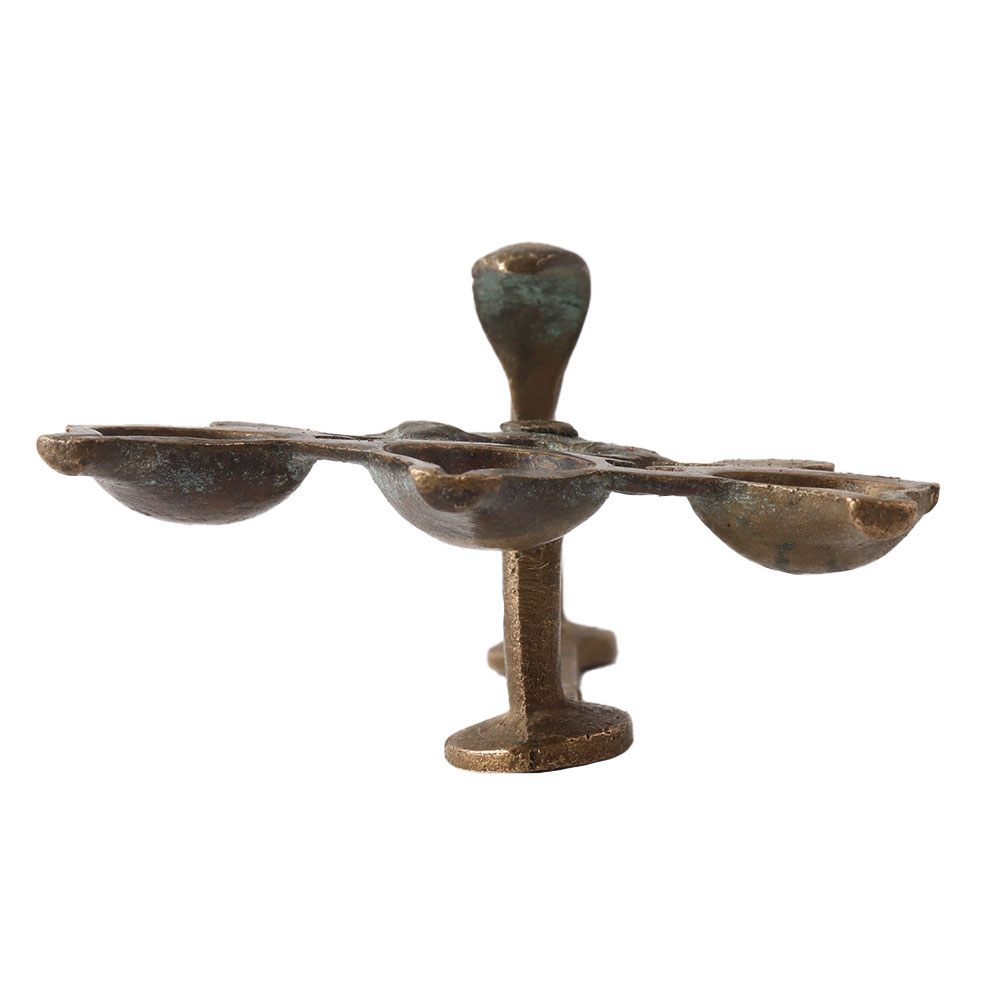 Three Wick Brass Arti lamp with Cobra Handle