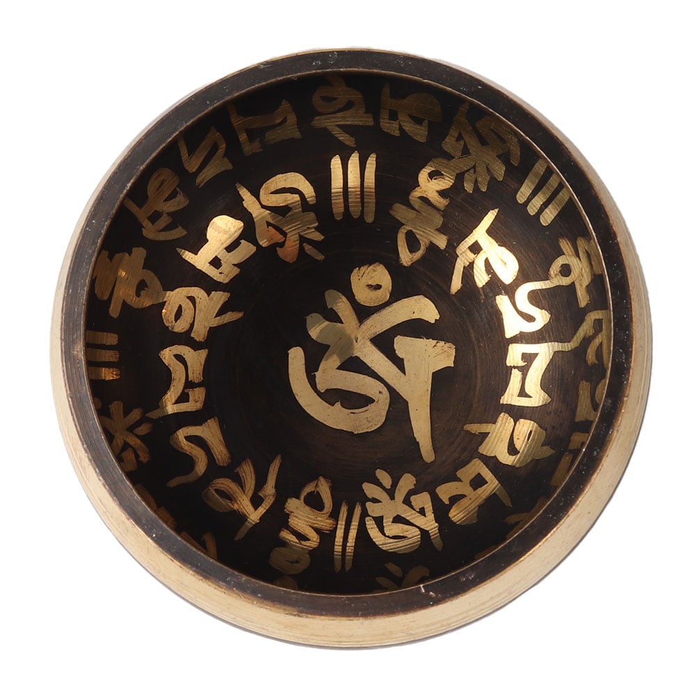 Handcrafted in Nepal by artisans skilled in the ancient art of singing bowl making, this piece is more than just an instrument—it's a work of art. The black brass finish gives it a refined and antique look, while the traditional Tibetan designs etched into the bowl add cultural depth, making it a beautiful and meaningful object to own.