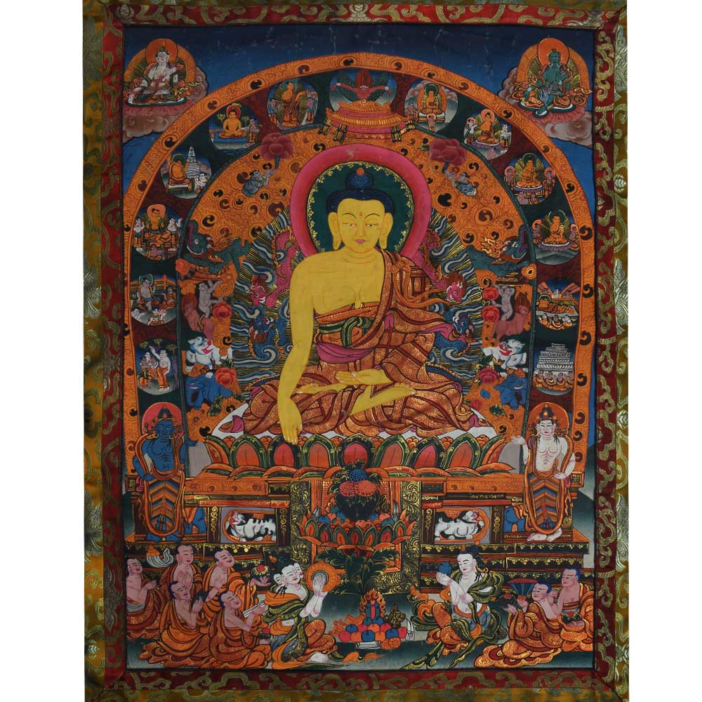 Tibetan Thangka Painting Of Shakyamuni Buddha Miracles