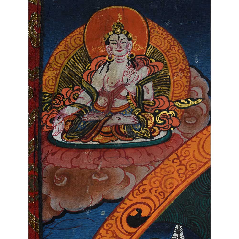 Thangkas are illustrated holy scrolls that are the pinnacle of Tibetan Buddhist art. Traditional thangkas were often hand painted with mineral colours and gold dust and they were also stitched or appliqued. They're found in monasteries and households and they're not just for decoration they're highly respected sacred objects. The art form began in Nepal in the 7th century and has since evolved into various painting schools.