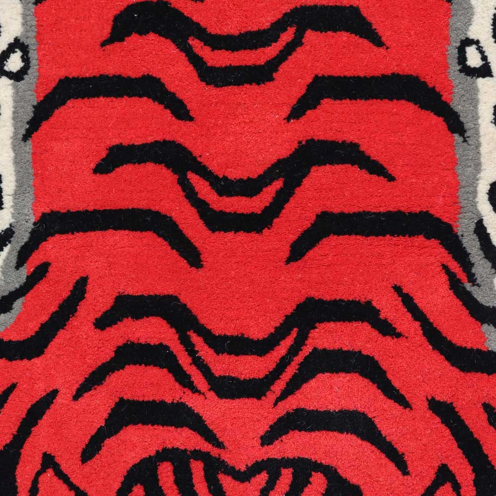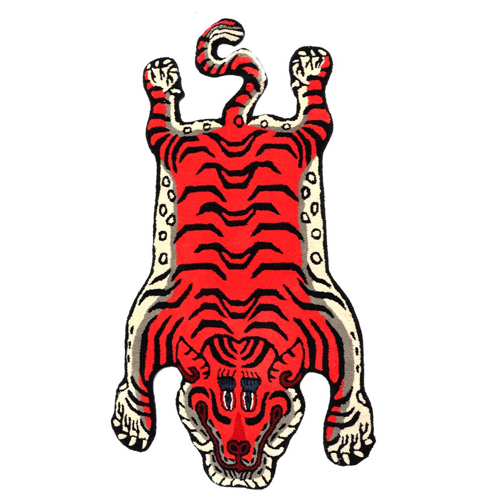Handmade Tibetan rug of superior quality for meditation and yoga made of 100% wool - A lovely interior piece for a child's room. Everyone needs a protector and a friend. This hand tufted Tibetan tiger rug makes the living room appears warm and cosy. Tiger rugs were popular among Lamas and Tibetan royalty as symbols of great power. Many people do believe that meditating on a tiger rug will provide you with positive energy and will help you improve your meditation practise.