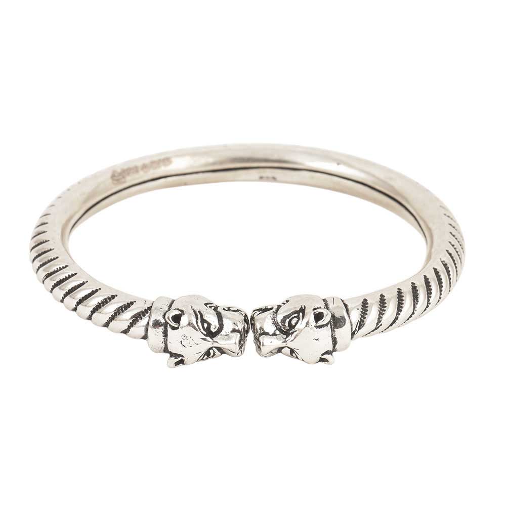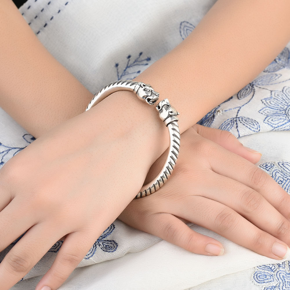 Made out of 925 Sterling Silver this light weight flexible bangle with tiger head looks very stylish and can be used for daily wear. This Handmade silver bangle can be matched with an assortment of apparels and can be worn to parties, weddings and other auspicious occasions.