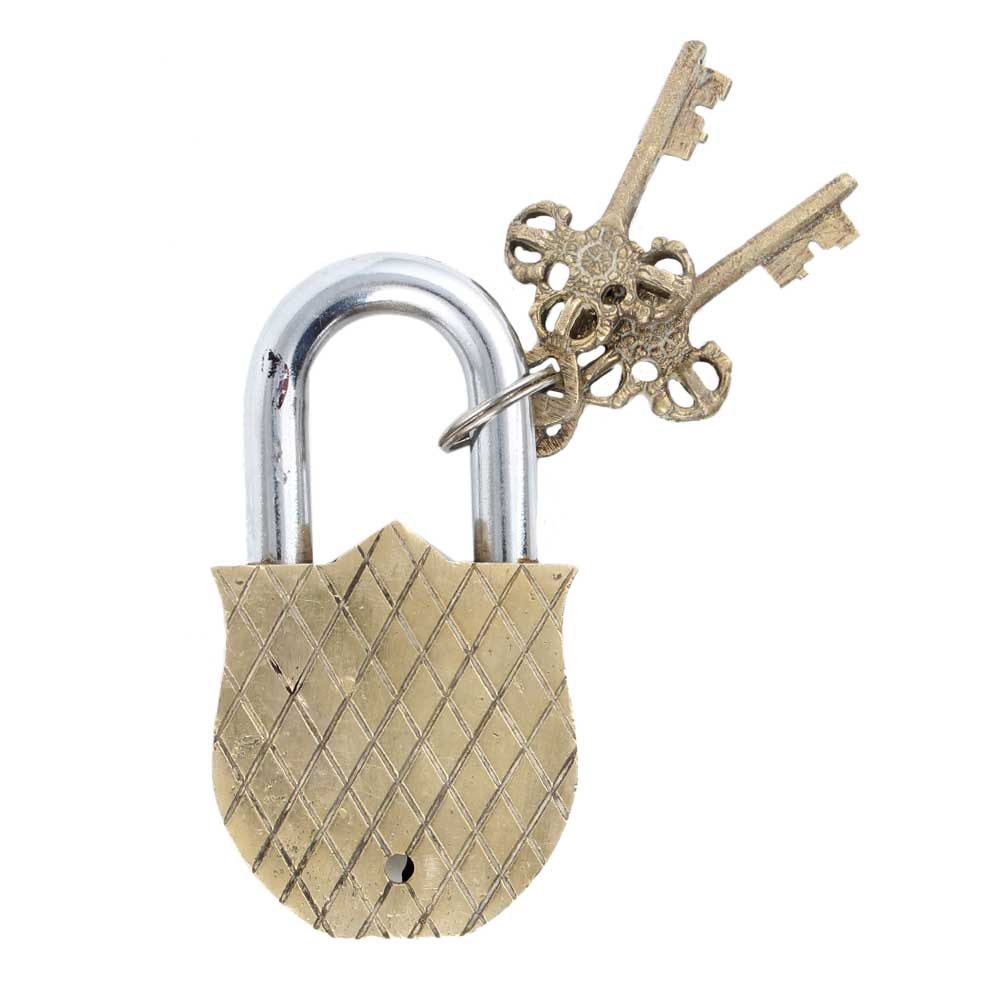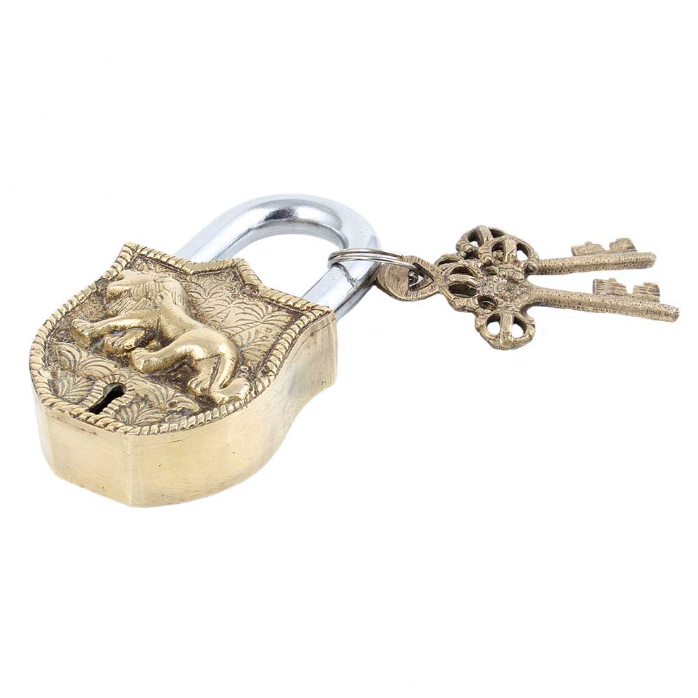 Tiger Engraved Design Brass Padlock Door Lock With 2 Keys . The lock looks study with 2 decorative keys. Enhance the décor value of the house, office, hotel, etc. Great for gifting during weddings, anniversaries etc.