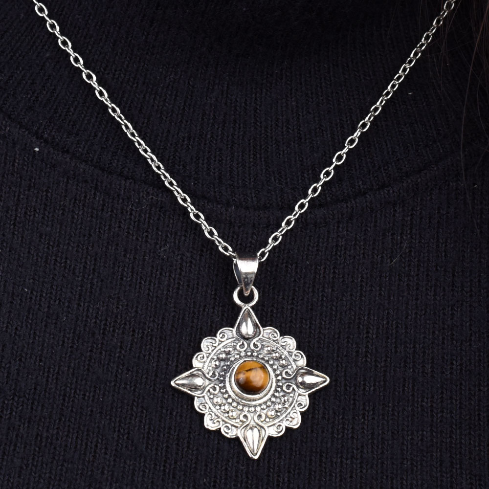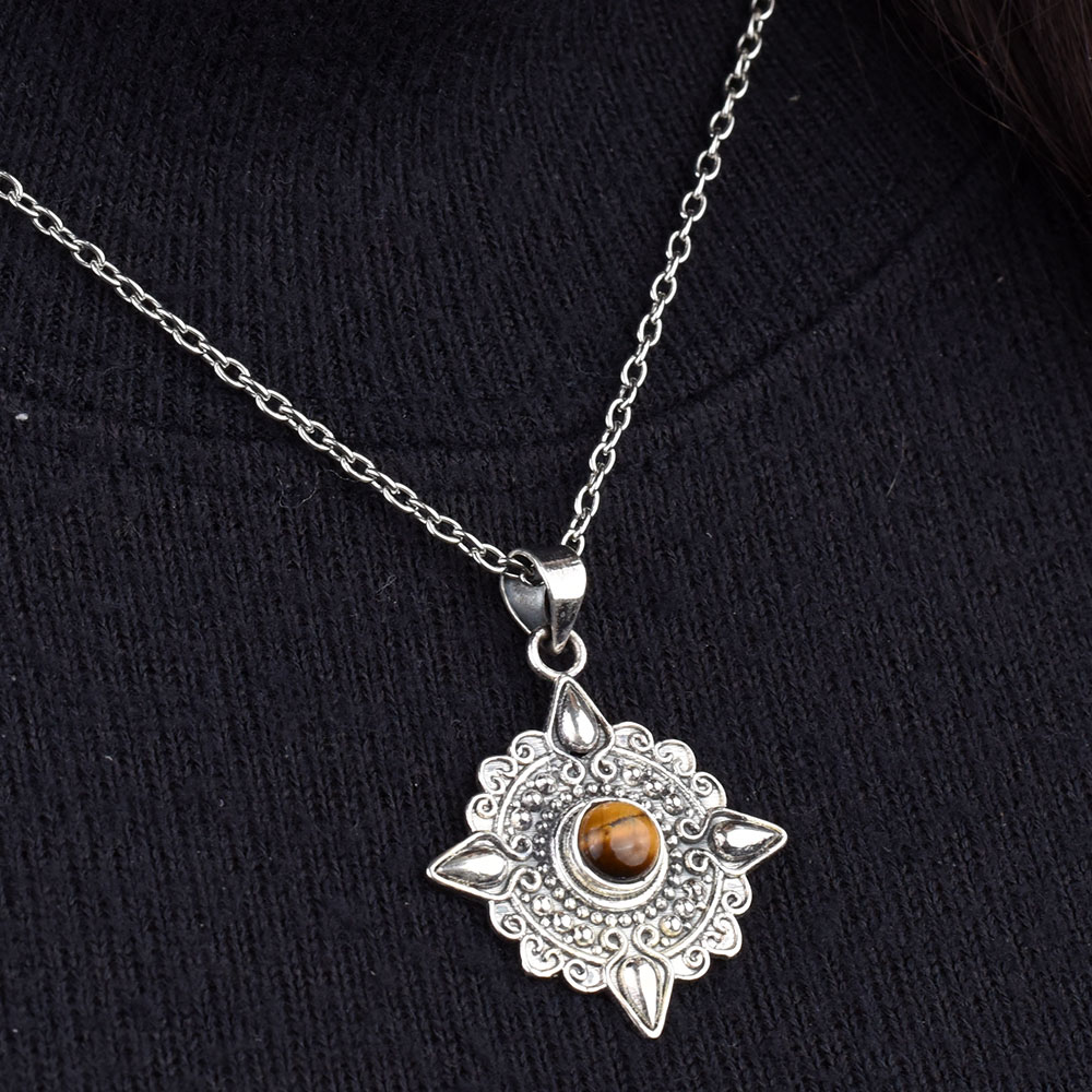 Tiger Eye Engraved Round 92.5 Sterling Silver Pendant is an Ideal fashion accessory to be worn on casual and party wear. Wedding gift, anniversary gift, birthday gift, Diwali, Christmas or new year party gift.