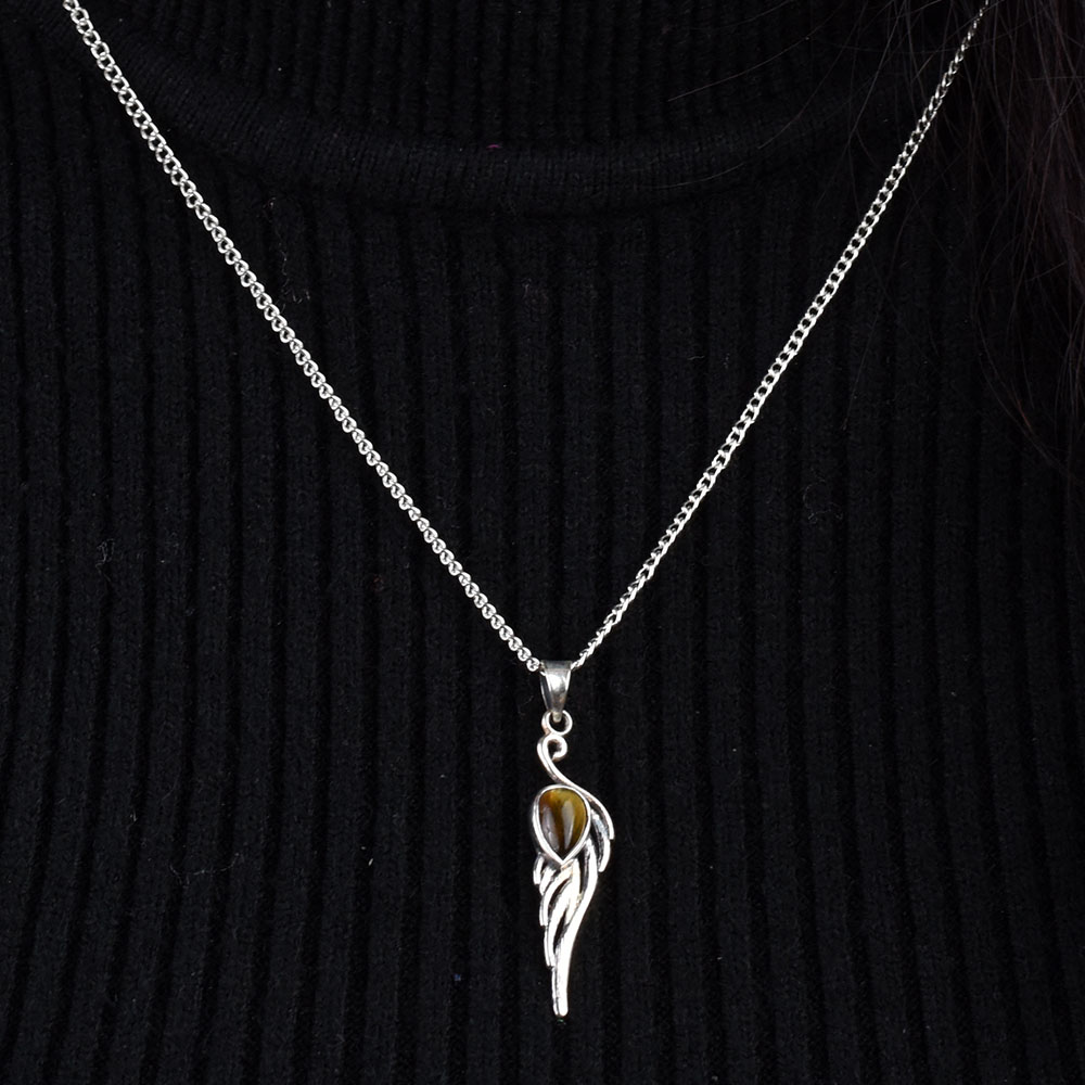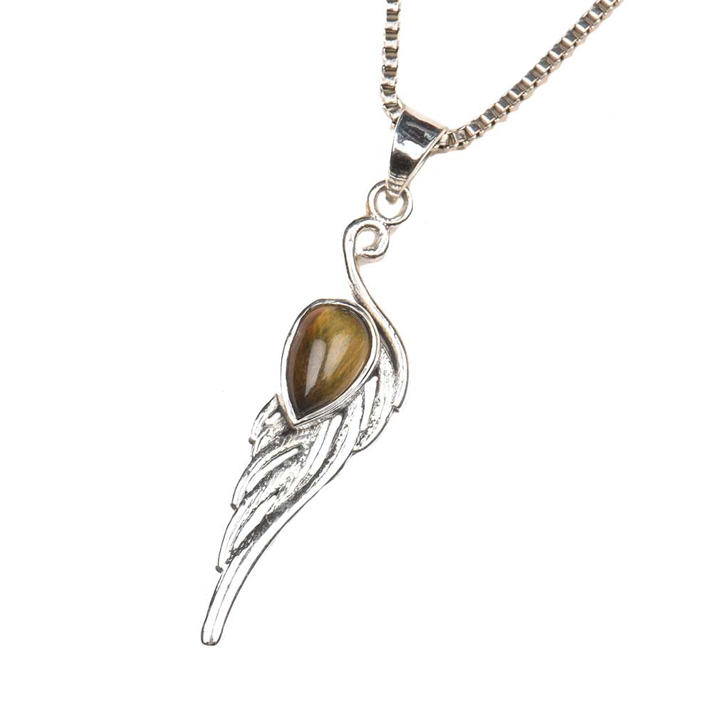 Tiger Eye Teardrop Feather Embedded 92.5 Sterling Silver Jewelry