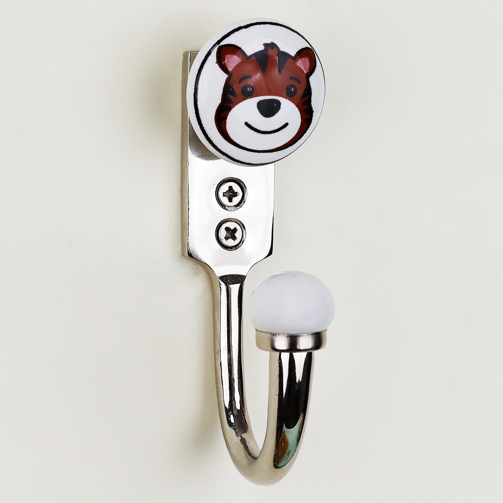 Material: Hand-painted ceramic head with zinc alloy hook Finish: Glossy ceramic with matte metal base Installation: Single-screw mounting; all hardware included