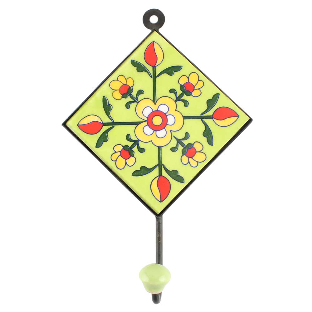 Tiny Flower Ceramic Tile Wall Hook in Pea Green