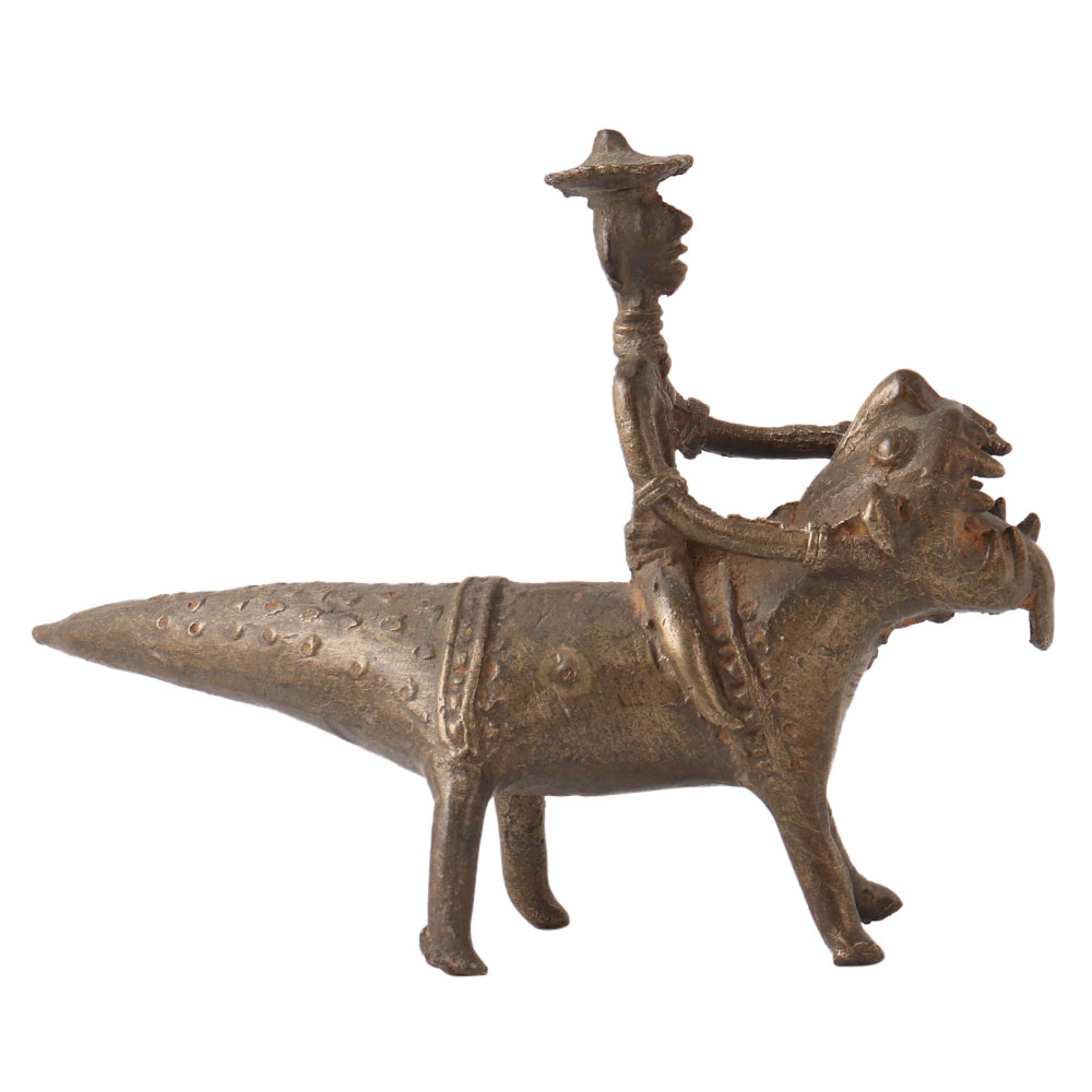 Buy a brass statue online on our website and have it delivered directly to your home. This brass figurine is made of high quality brass by skilled and experienced craftsmen from India. This statue features an animal with a rider sitting on it and is made with intricate details to enhance its presence. Place this statue on the reception or billing counter of your hotel, restaurant or cafe and it will become a centre of attraction in your decor. This is one of the best sculptures that is in high demand today to add an alluring flair to the decoration. Made with attention to detail and its vintage style appearance makes it a perfect statue for vintage collection and gift for special and festive occasion for your near and dear ones..