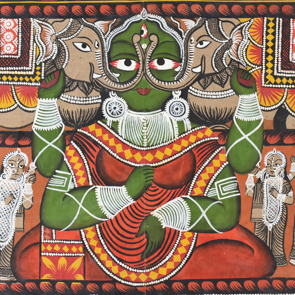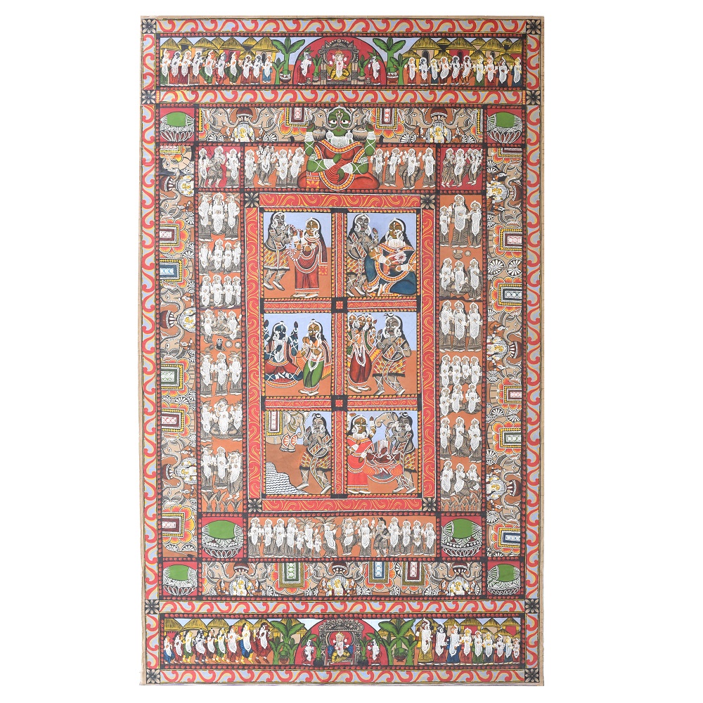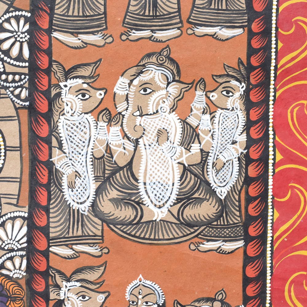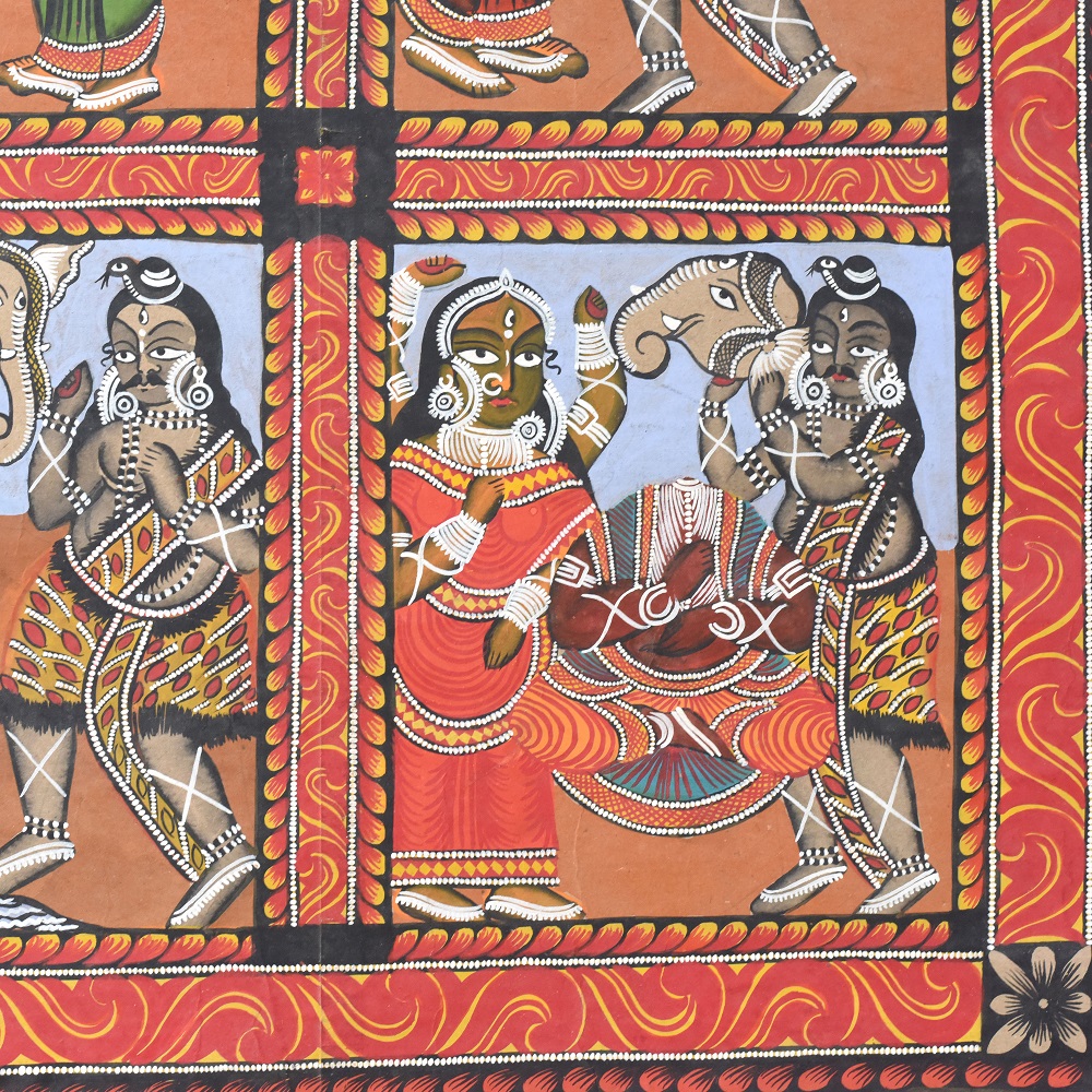 - Features traditional Bengal Pattachitra panel layout and decorative borders.