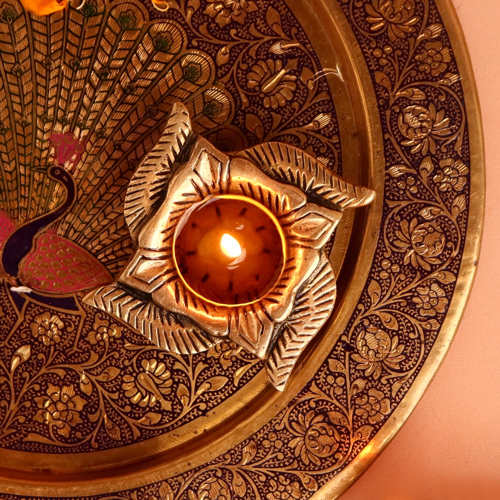 The Traditional Brass Diya in Swastika Oil Lamp is an exquisite piece crafted for the joyous occasion of Diwali. Featuring a beautifully designed swastika pattern, this diya serves as both a traditional symbol of auspiciousness and a timeless decorative piece. Made from high-quality brass, it exudes a warm, radiant glow when lit, adding to the spiritual and festive atmosphere of your home. Whether placed in your pooja room or as part of your Diwali decor, this lamp will bring both light and positivity into your space.