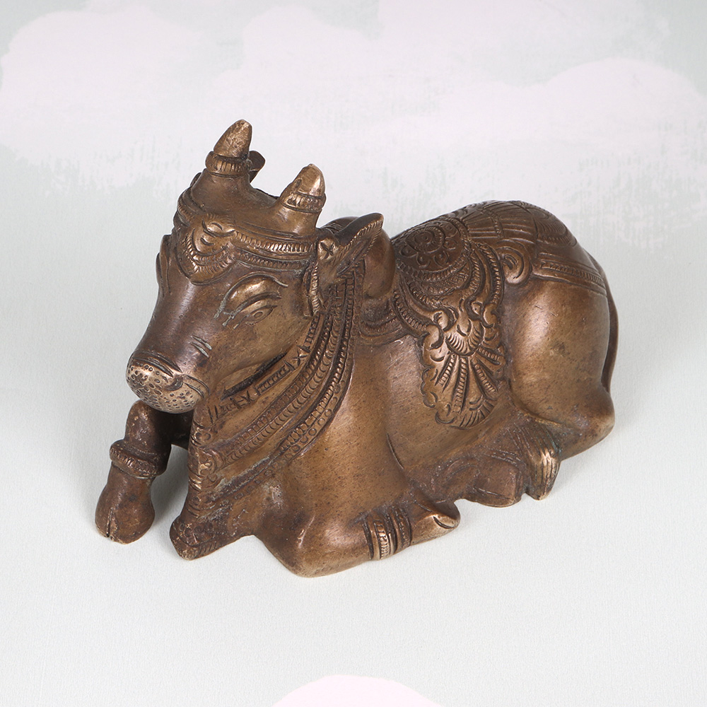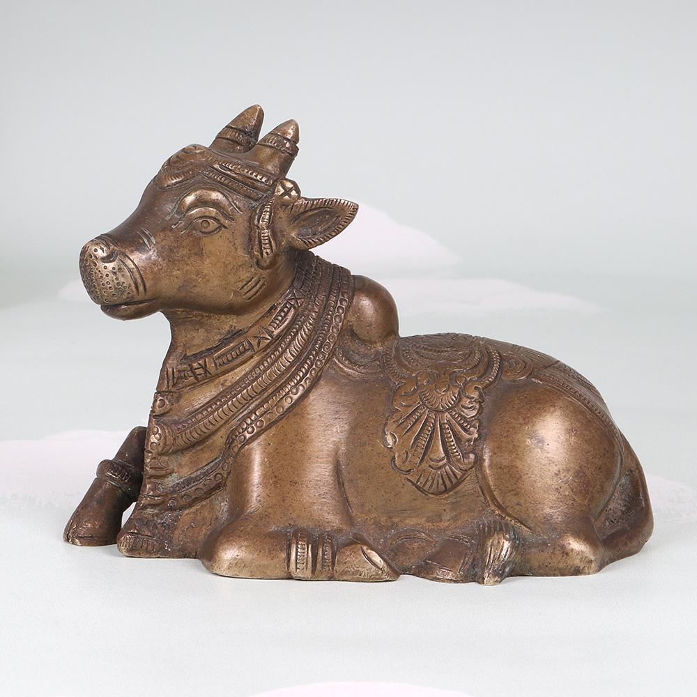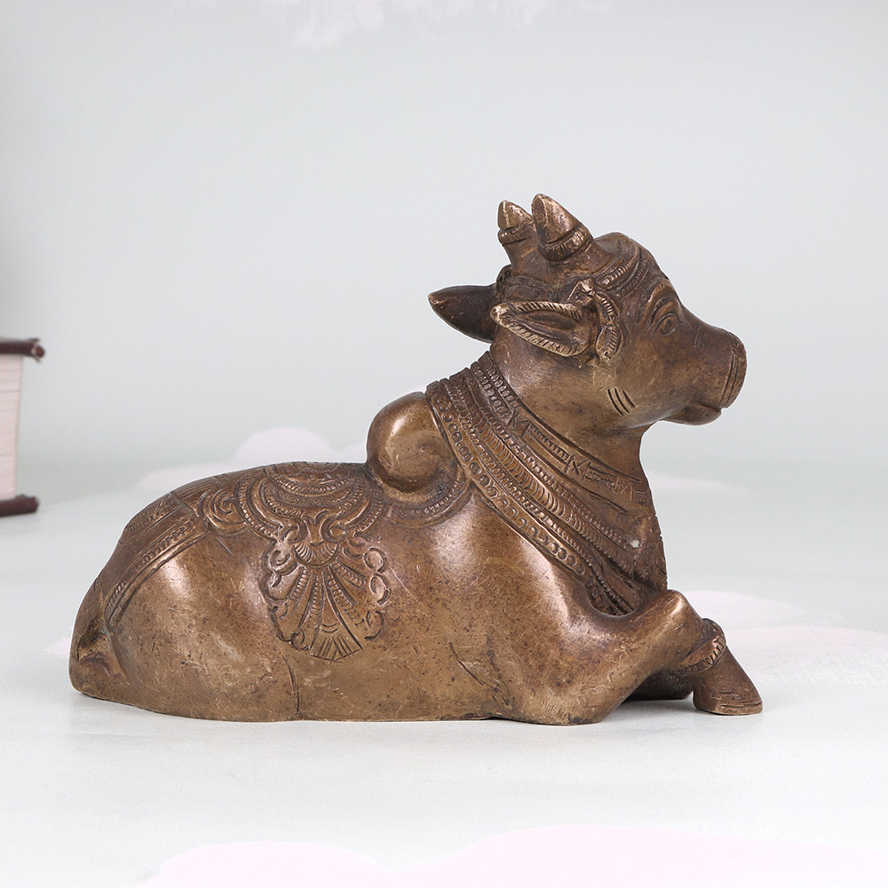 Unlock the transformative power of meditation with this breathtaking vintage brass Nandi. Meticulously crafted from solid brass, this stunning statue is built to last a lifetime while elevating your spiritual practice to new heights. The intricate carvings covering its surface create a mesmerizing visual focal point, drawing your gaze inward and promoting deep contemplation. The Nandi's seated posture is specifically designed to encourage mindfulness and inner calm. As you settle into your meditation, the Nandi's grounded presence will center your focus and help you achieve a state of profound serenity. Whether you're a seasoned yogi or just beginning your mindfulness journey, this extraordinary piece will infuse your practice with a sense of timeless wisdom and tranquility. Versatile enough to complement any decor, the vintage brass Nandi makes a stunning addition to your meditation space, living room, or office. Its timeless aesthetic blends seamlessly with modern and traditional styles alike, ensuring it will become a cherished centerpiece in your home for years to come. Invest in this exquisite work of art and elevate your mindfulness practice to new heights of clarity and peace.