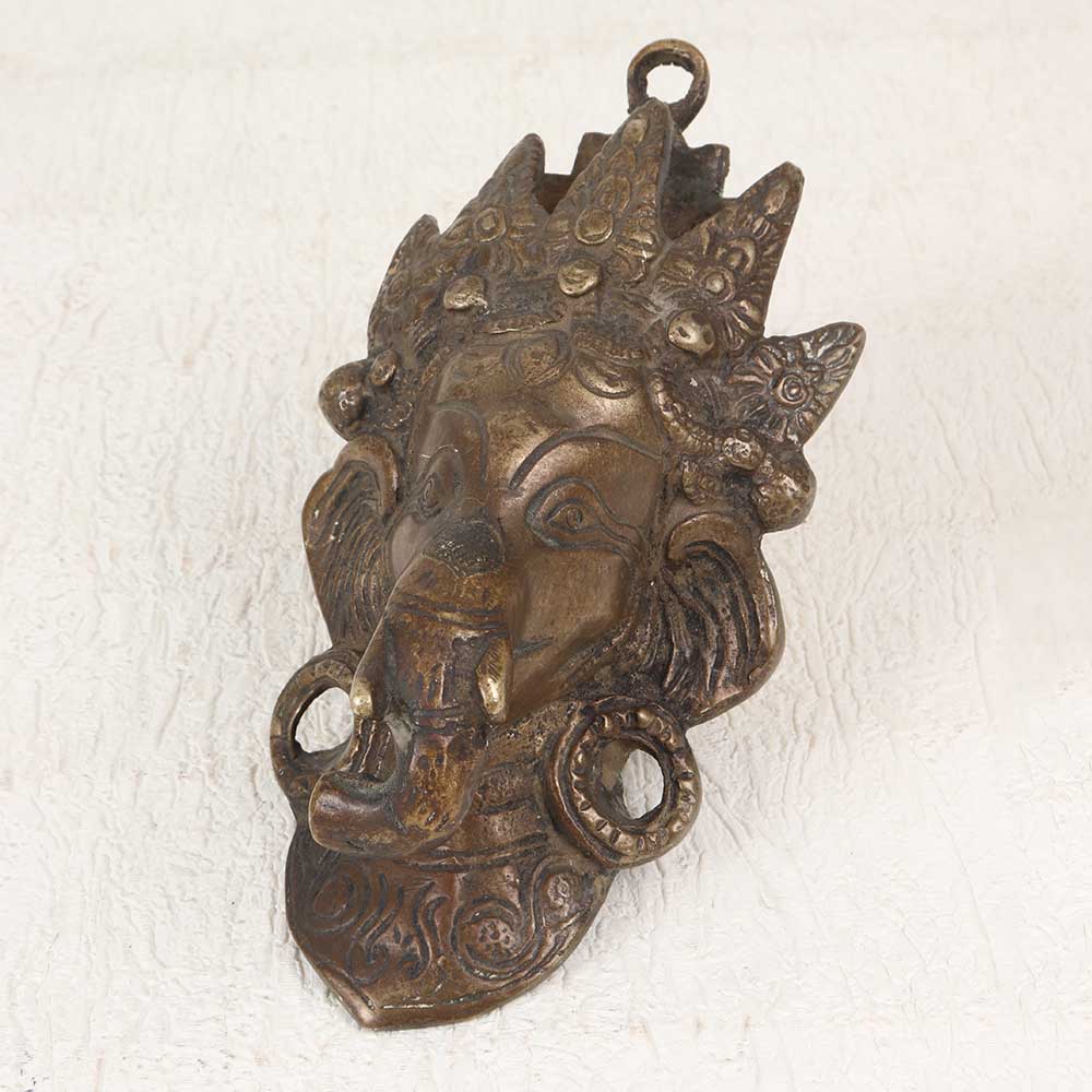 Add a divine touch to your home with this vintage brass Lord Ganesha head plate, perfect for wall hanging. This intricately crafted plate features the elephant-headed Hindu god Ganesha, known as the remover of obstacles. With his trunk turned to the left, this Ganesha signals good luck and prosperity. The antique brass finish gives this wall art an eye-catching, vintage look that will become a focal point wherever it's displayed. Bring good fortune and divine energy into your home with this special Ganesha wall art. An ideal statement piece for those who appreciate Hindu deities and meaningful, cultural decor. Make your space feel holy with this vintage brass Lord Ganesha plate today!