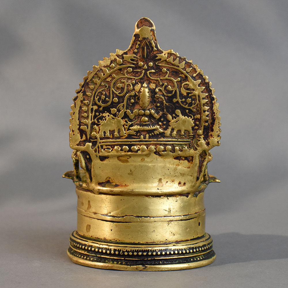- Traditional South Indian brass diya with deity design
