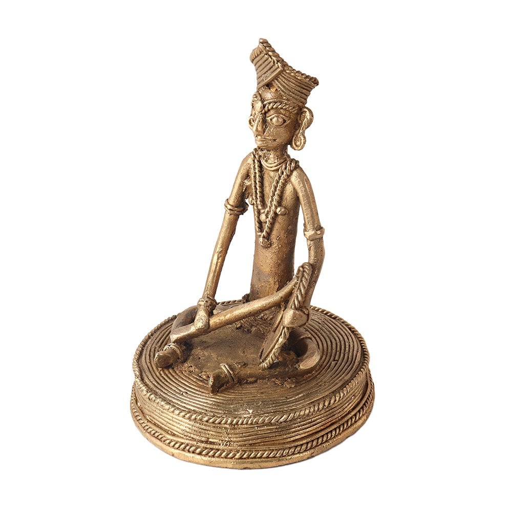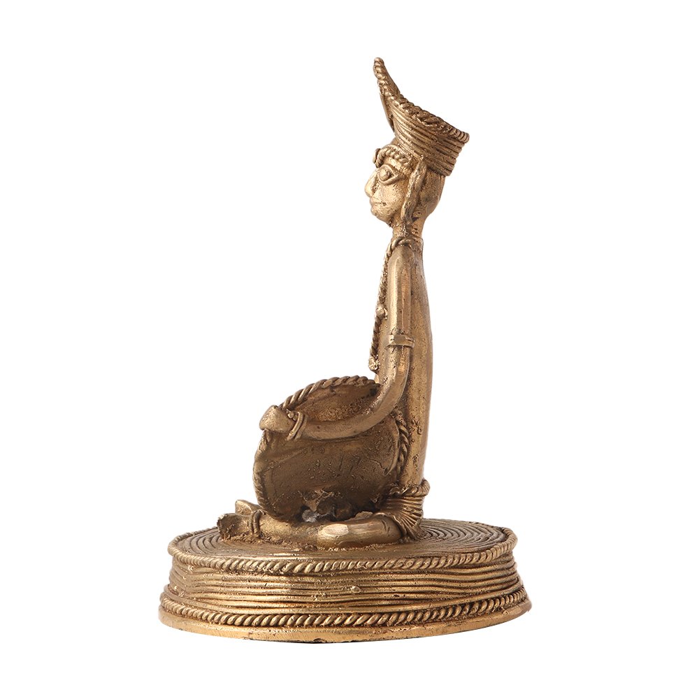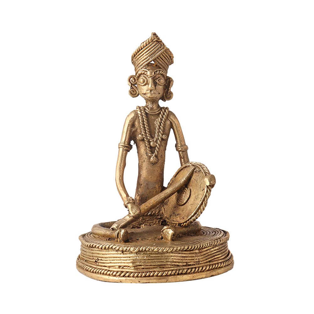 Buy a traditional brass statue online from our website to get hassle-free delivery at your doorstep. This statue depicts a male musician wearing a turban and sitting on a pedestal playing an Indian instrument Dafli. An incredible item made by skilled and experienced craftsmen of India using ancient methods. This brass handmade statue is made with intricate details that makes it look more attractive. Place this statue in your home, restaurant, music school, hotel, spa or shop. Its eye-catching look makes it stand out from other brass statues. An incredible item to add to your vintage art collection and a perfect gift for any special and festive occasion for your loved ones.