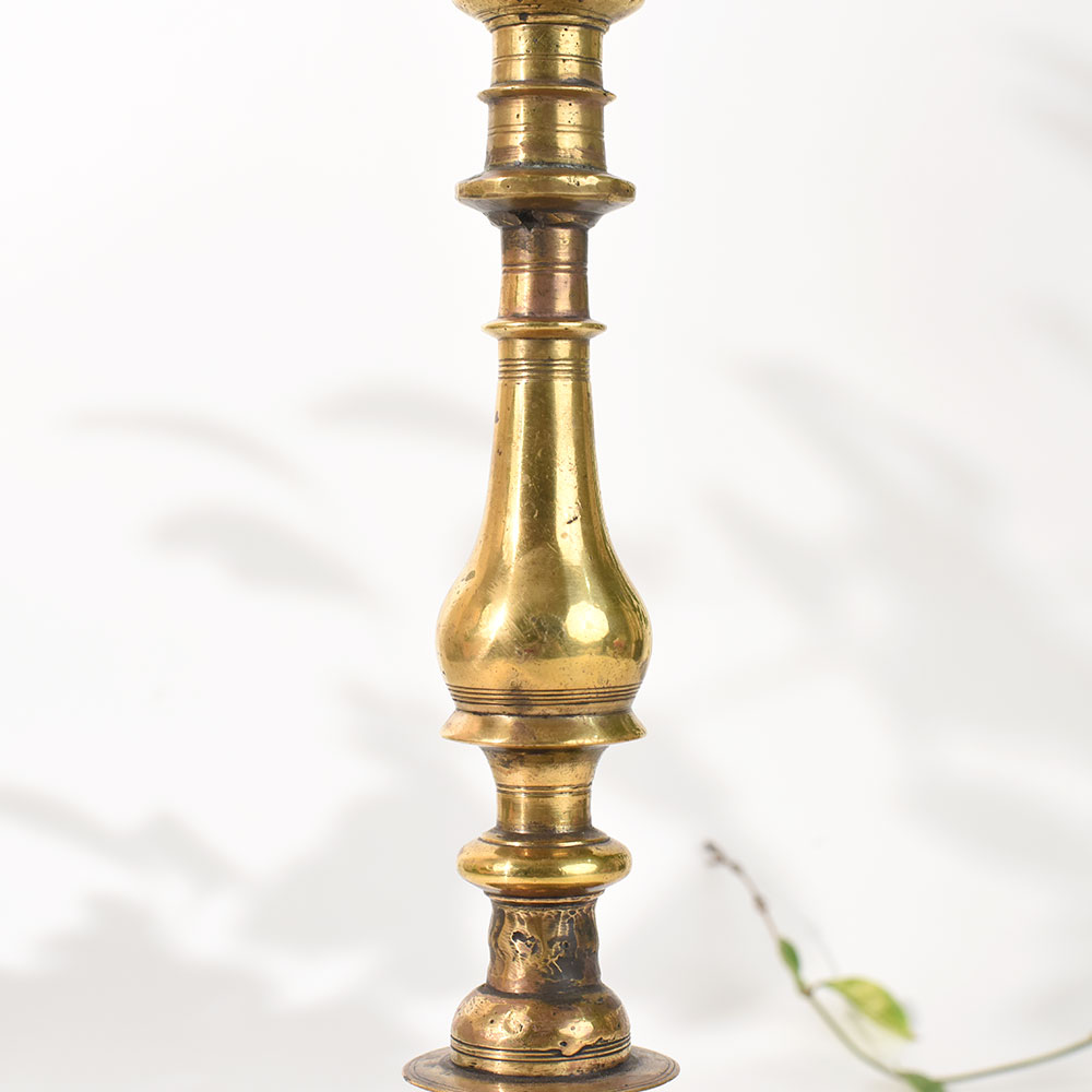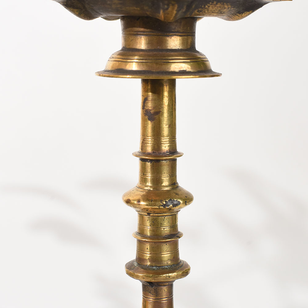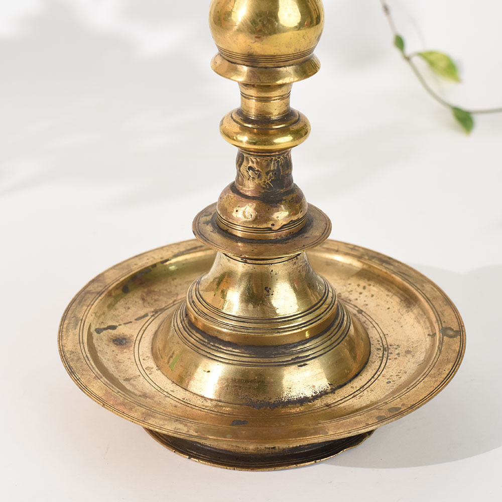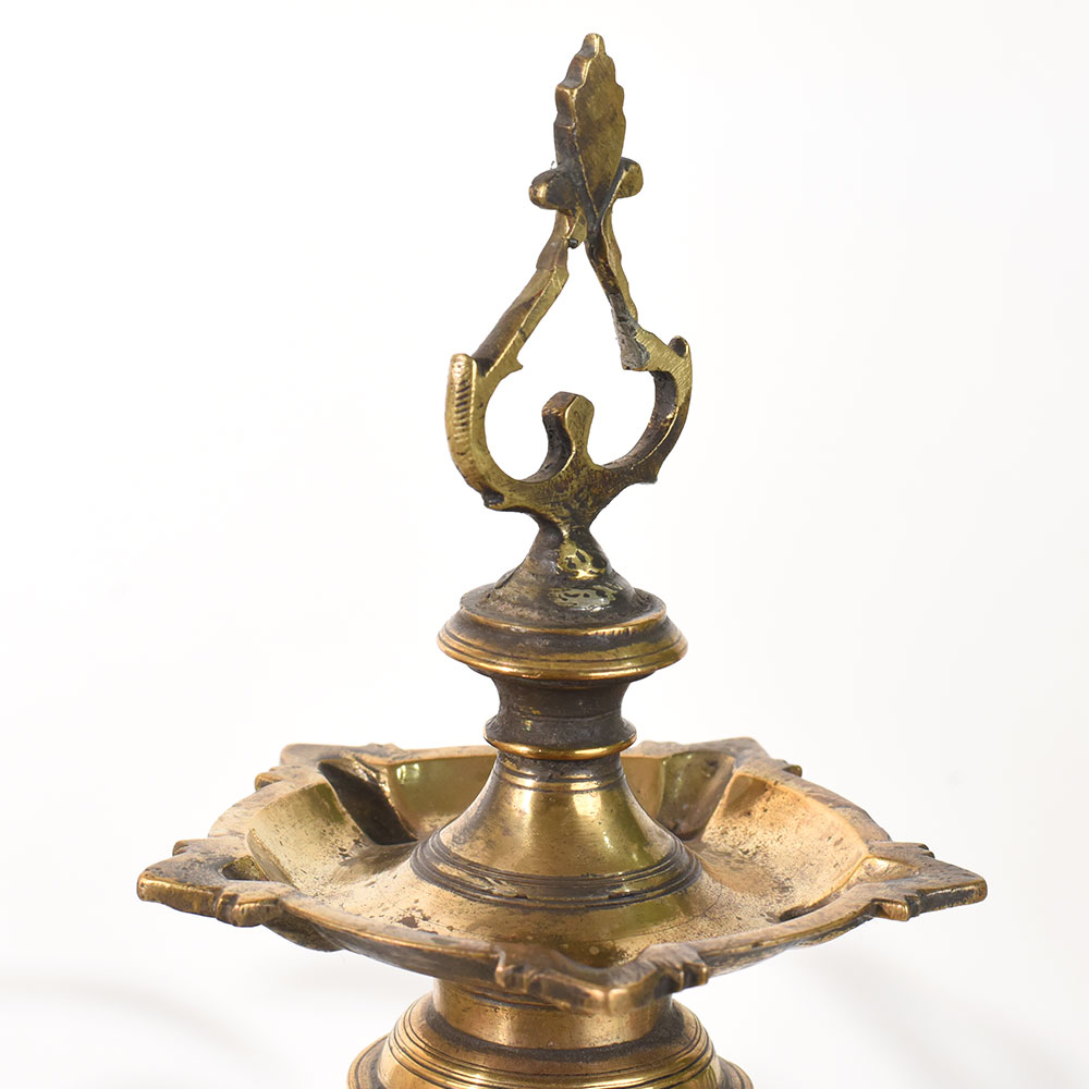 - Vintage brass lamp stand inspired by South Indian temple art