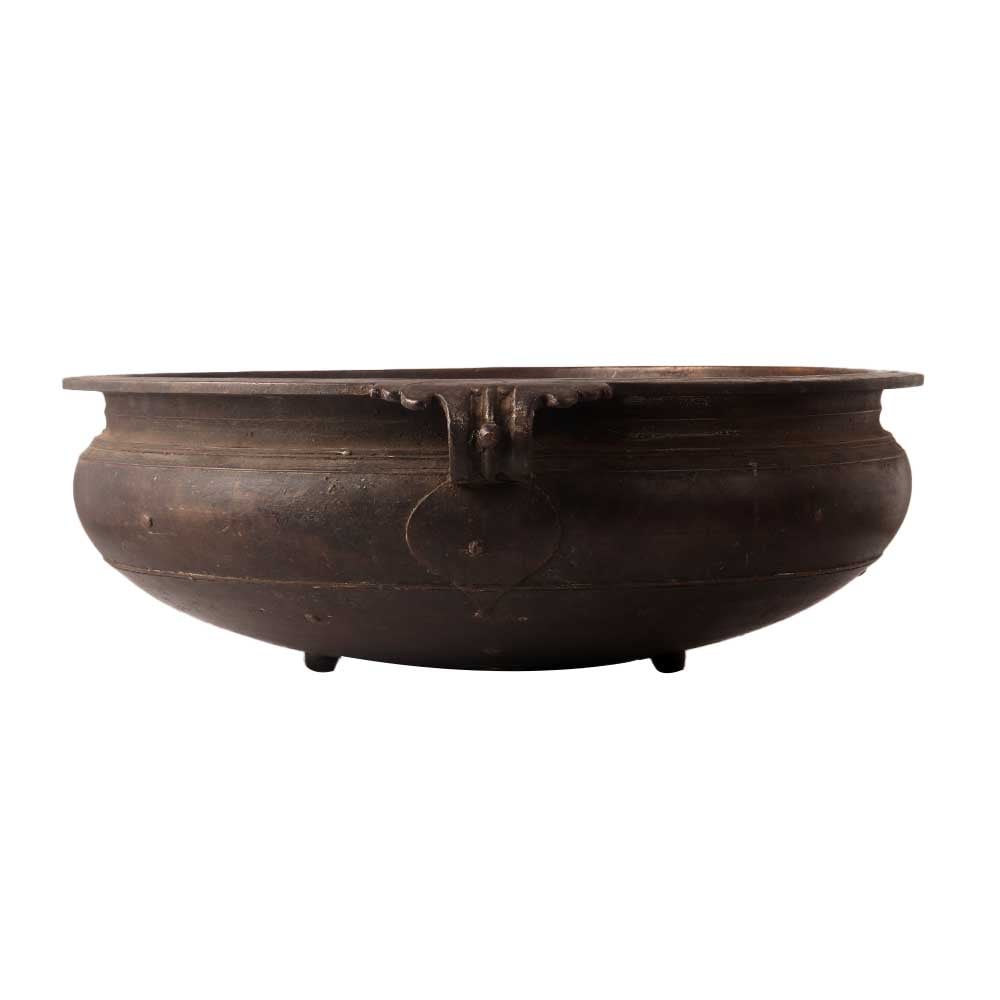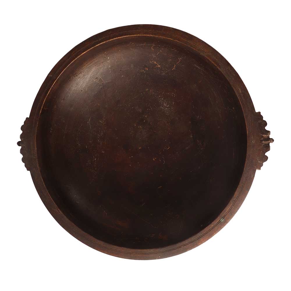 A traditional handmade brass uruli or urli is nowadays used for decoration in houses, offices, restaurants and hotels. This brass Urli is made of high quality brass and has an antique dark brown finish with integrated handles for easy carrying. This decorative brass Urli can be used as a flower pot for indoor or outdoor garden. Buy this brass urli pot to experience a vintage style decorative artefact in your home. This traditional Urli is made in South Indian art by skilled craftsmen and is used for decoration in homes, restaurants and hotels entrance and courtyard garden. An ideal gift for any special, festive or auspicious occasion for your loved ones to make their day.