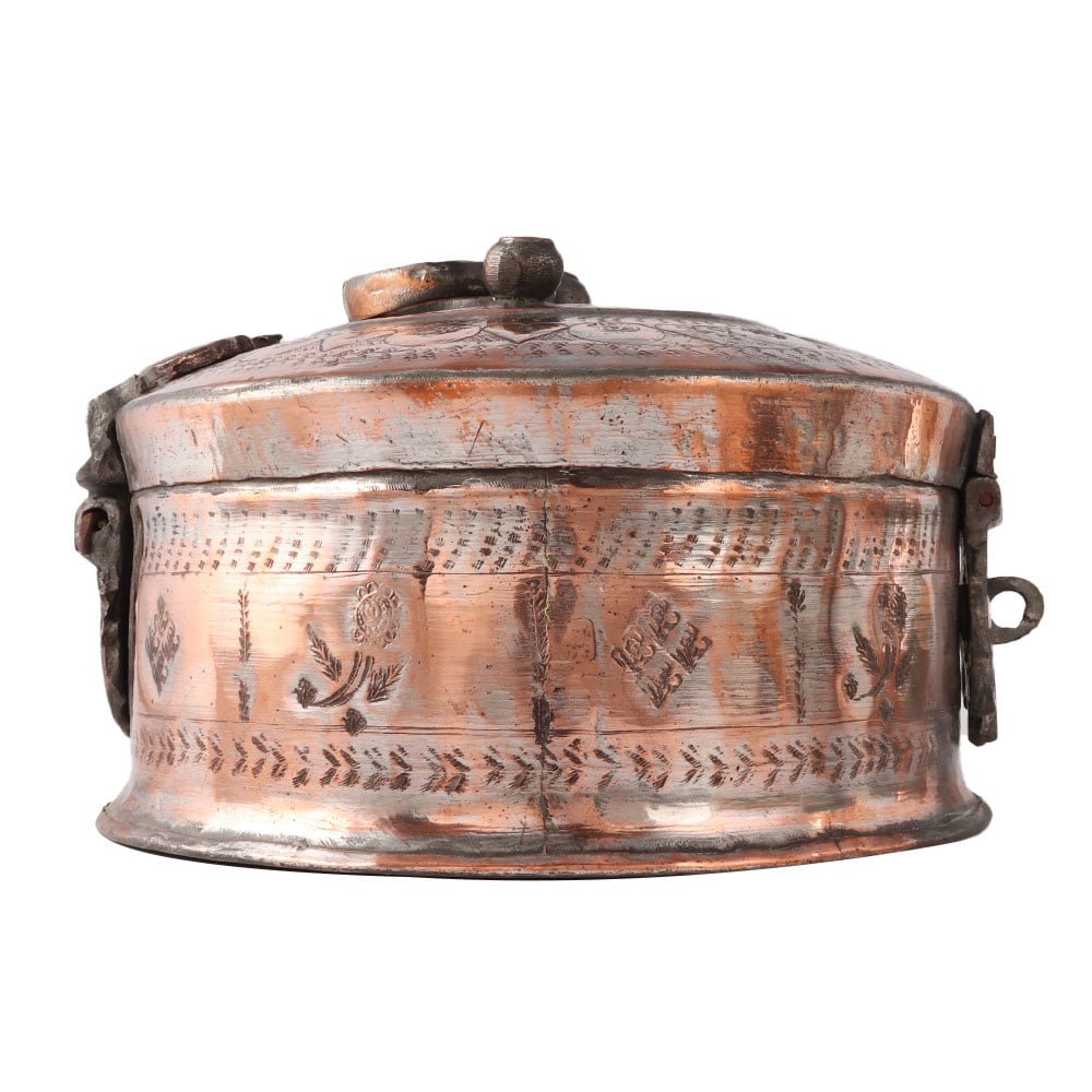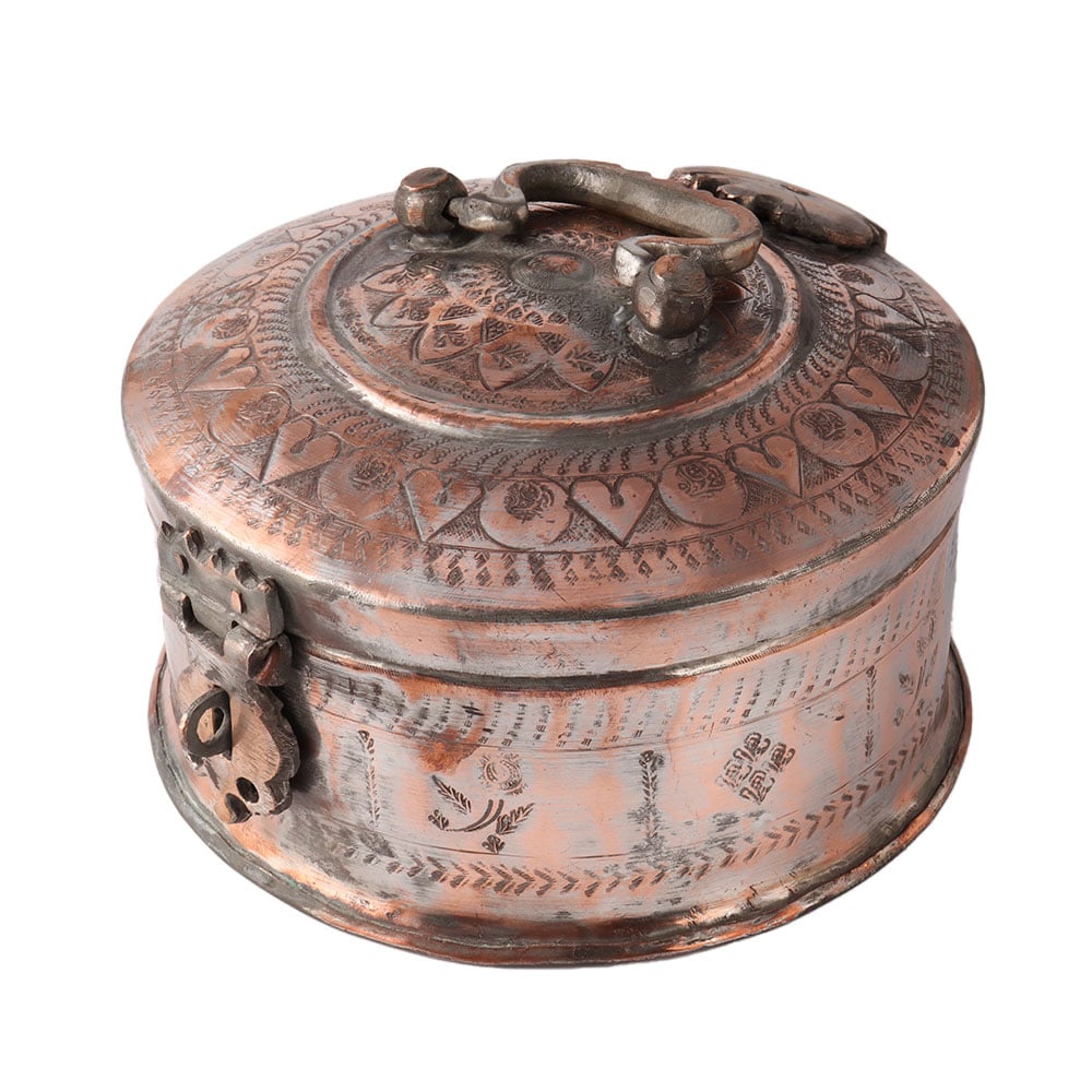Traditional Copper Box With Kunda And Handle