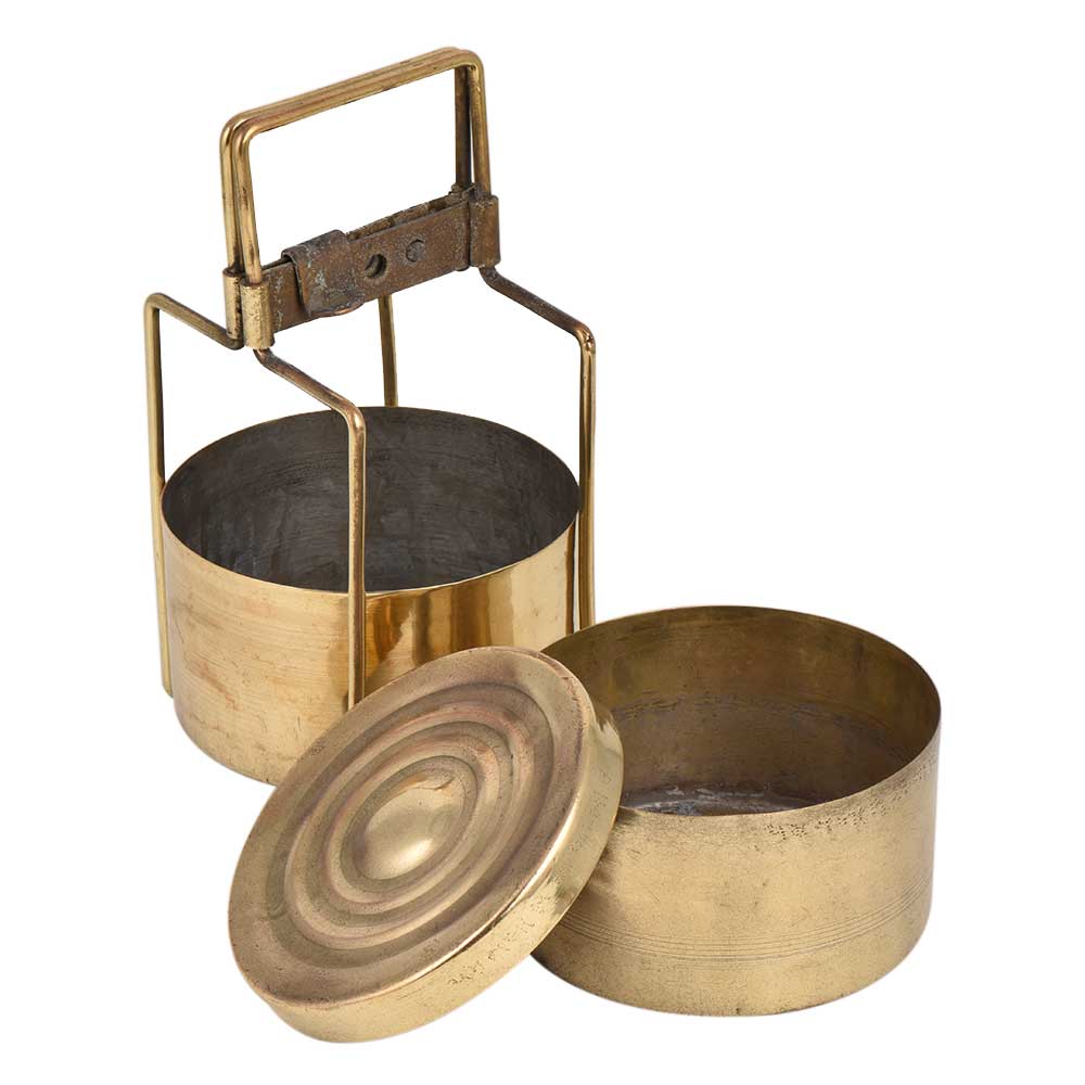 Double Container Brass Tiffin Container made by Indian craftsmen is made best quality brass with two storage boxes where the upper box has a lid . Both the containers are sealed together with the help of a metal frame with a traditional lock . Keep it for yourself or gift it to your near and dear ones on Christmas, new year , house warming etc.