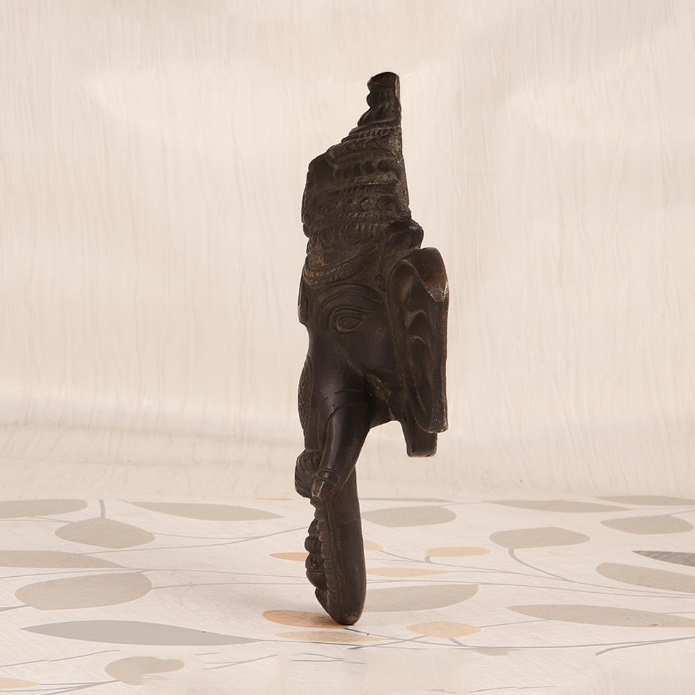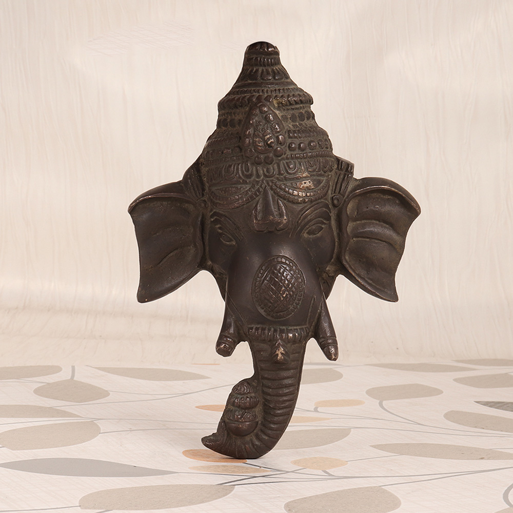 Lord Ganesha, the beloved remover of obstacles, is revered across India as the bringer of good fortune, prosperity, and new beginnings. This exquisite brass wall hanging allows you to invite his benevolent energy into your personal space, imbuing your home with his divine blessings. Crafted by skilled artisans using traditional metalworking techniques, this striking Ganesha head features an intricately detailed, three-dimensional design that captures the deity's regal presence. The warm, lustrous brass radiates an ancient, timeless quality, making this piece a stunning focal point that will elevate any room's ambiance. Whether you're looking to add a spiritual touch to your meditation space, bring a sense of harmony to your living room, or infuse your office with an uplifting energy, this breathtaking Ganesha wall hanging is the perfect addition. Its versatile size and classic aesthetic ensure it complements a wide range of decor styles, from modern minimalist to ornate traditional. Invite the blessings of Lord Ganesha into your life and home with this exquisite brass masterpiece.