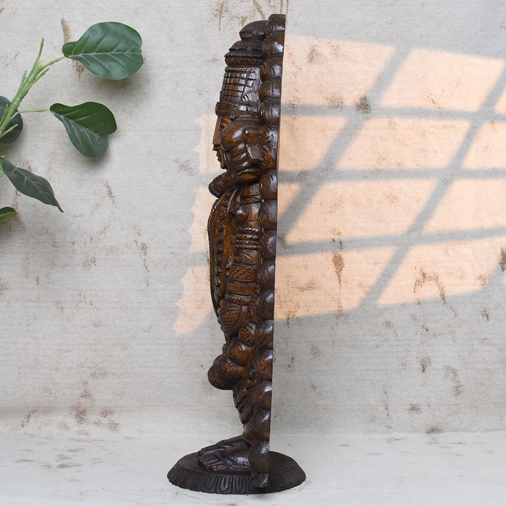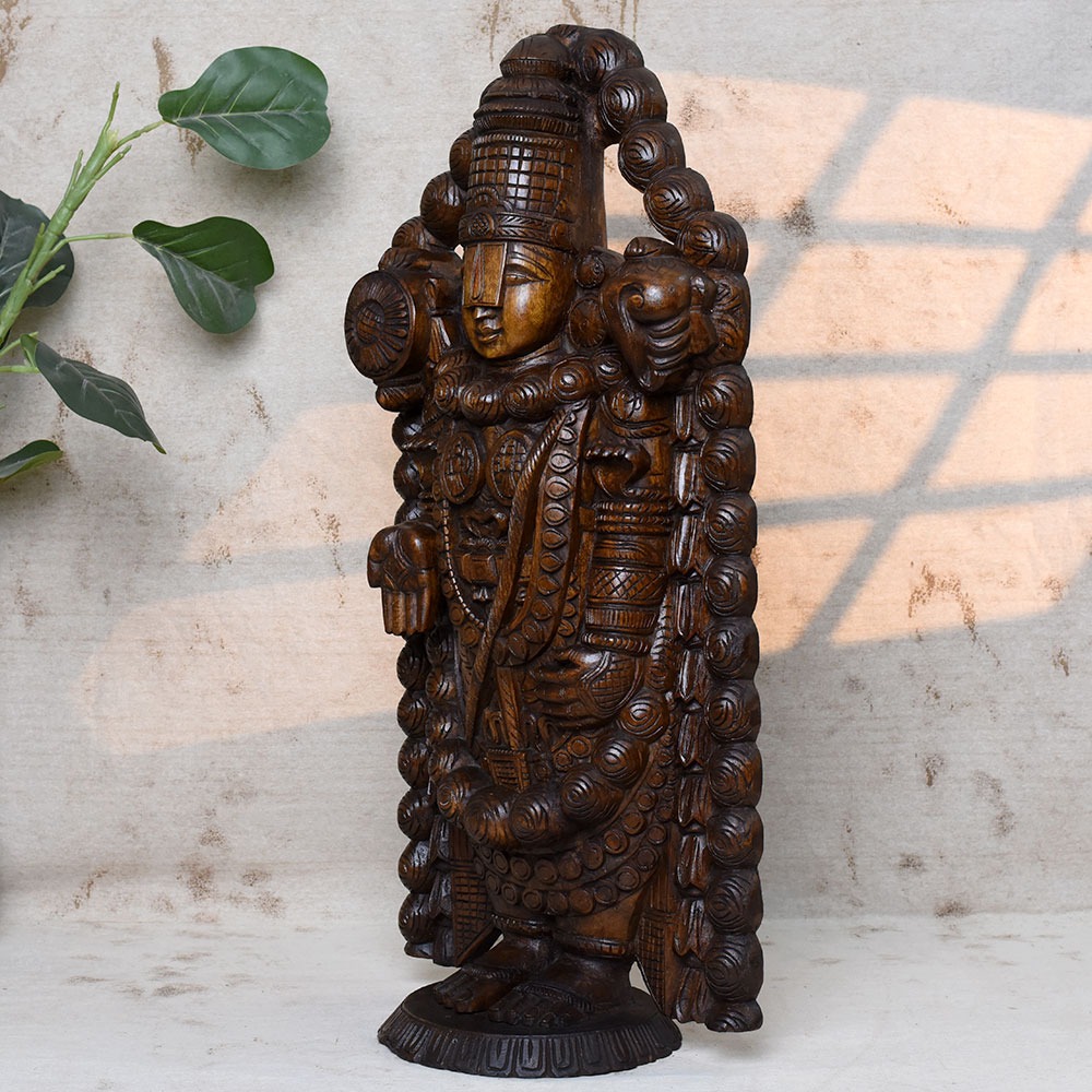 Invite divine blessings and timeless artistry into your home with the Handcrafted Wooden Lord Venkateswara Statue. Skillfully carved from premium wood, this idol showcases fine detailing, ornate jewelry patterns, and a majestic stance. A spiritual centerpiece, it radiates devotion, serenity, and traditional elegance, making it ideal for pooja rooms, living areas, and temple décor.