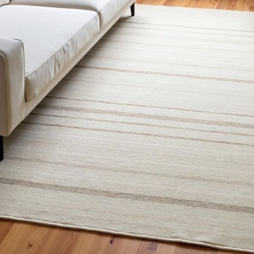 Meticulously handmade in Bhadohi, India, this neutral-toned rug is the perfect foundation for any contemporary, Scandinavian, Japandi, or minimal home decor. Each rug is made using traditional hand-knotting methods, taking weeks of focused attention and care. The result? A durable and beautifully made textile that adds understated luxury to your home. Tags for SEO & Platforms: minimalist hand knotted rug, cream and beige wool rug, modern neutral carpet, Bhadohi wool rug, 5x7 area rug, Japandi floor rug, Scandinavian living room rug, handmade striped rug, AnsariRugDesign, artisan modern rug As it Appears Pack of One Piece.