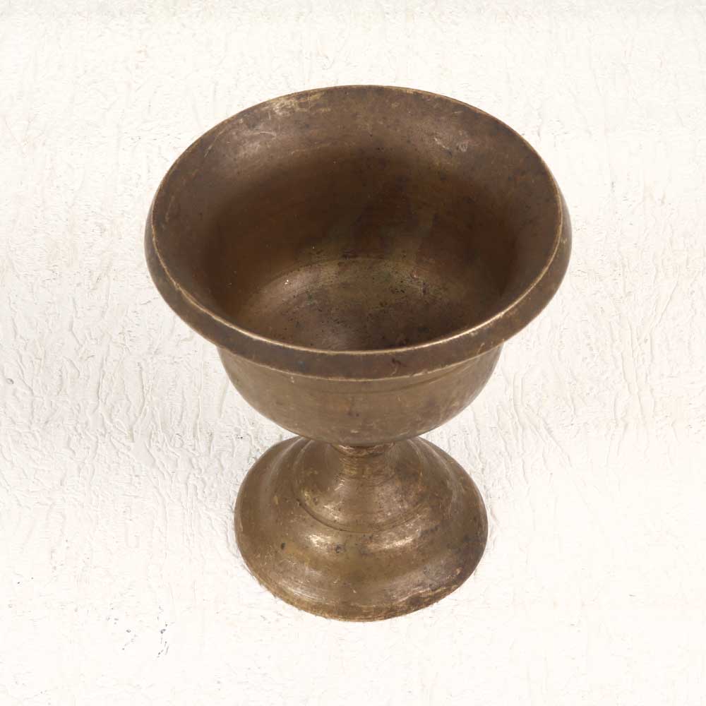 Bring a touch of spirituality and elegance to your home with this vintage brass holy cup. This beautiful cup features intricate etchings and a classic design that will elevate any room. This vintage holy cup isn't just visually striking - it also enriches your daily rituals. Use it in your home pooja to offer water or other liquids to the gods. The brass construction and traditional shape create a meaningful focal point for meditation and prayer. After the pooja, proudly display the cup on its stand on a table, bookshelf or mantle. Let its brilliant warm glow and craftsmanship become a conversation starter for visitors. Bring a touch of history, meaning and sacredness into your home with this brass vintage holy cup. It's ideal for people who want to strengthen their connection with the divine through their home decor and pooja rituals.