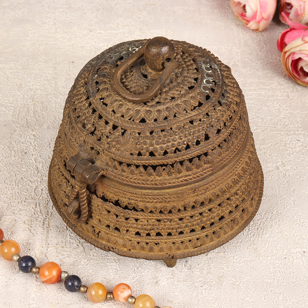 A Vintage Brass Jewelry Box which is a timeless piece of artistry that seamlessly combines functionality with elegance. This round-shaped box is adorned with intricate engravings that captures the essence of classic design. Crafted from high-quality brass in the traditional Odisha Art style by skilled Indian artisans, this handmade masterpiece radiates authenticity and cultural richness. The antique brown finish lends a touch of vintage charm, creating a stunning aesthetic that transcends time. Fitted with a secure latch, it provides a safe haven for your precious stones and jewelry, making it both a storage solution and a work of art. Its versatile design allows it to grace any setting, whether at home, office, restaurant, hotel, or cafe, adding a touch of sophistication to the surroundings. Ideal for collectors seeking to expand their vintage treasures, this brass jewelry box is a perfect addition. Moreover, it makes for a thoughtful and cherished gift for your loved ones on special, festive, or auspicious occasions.