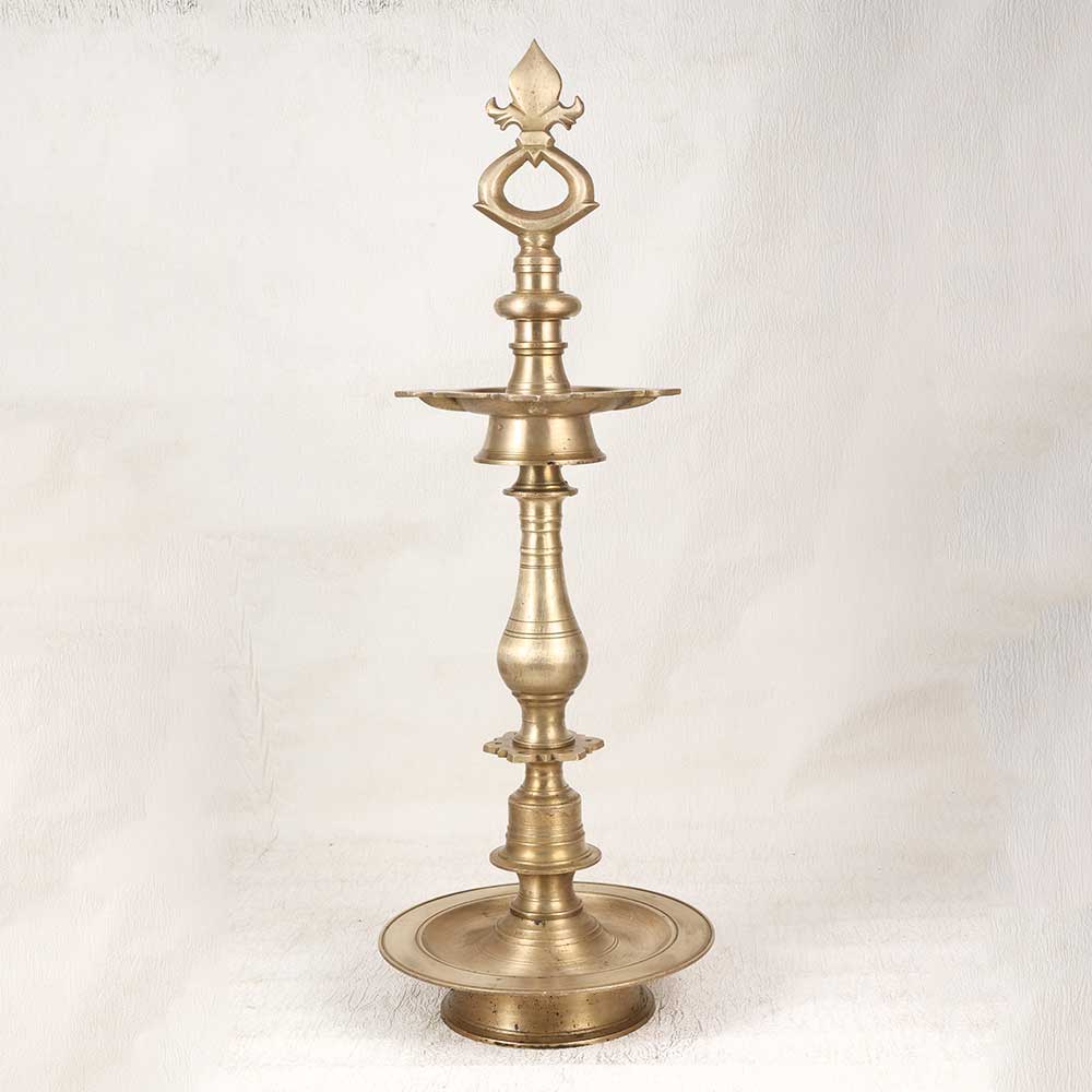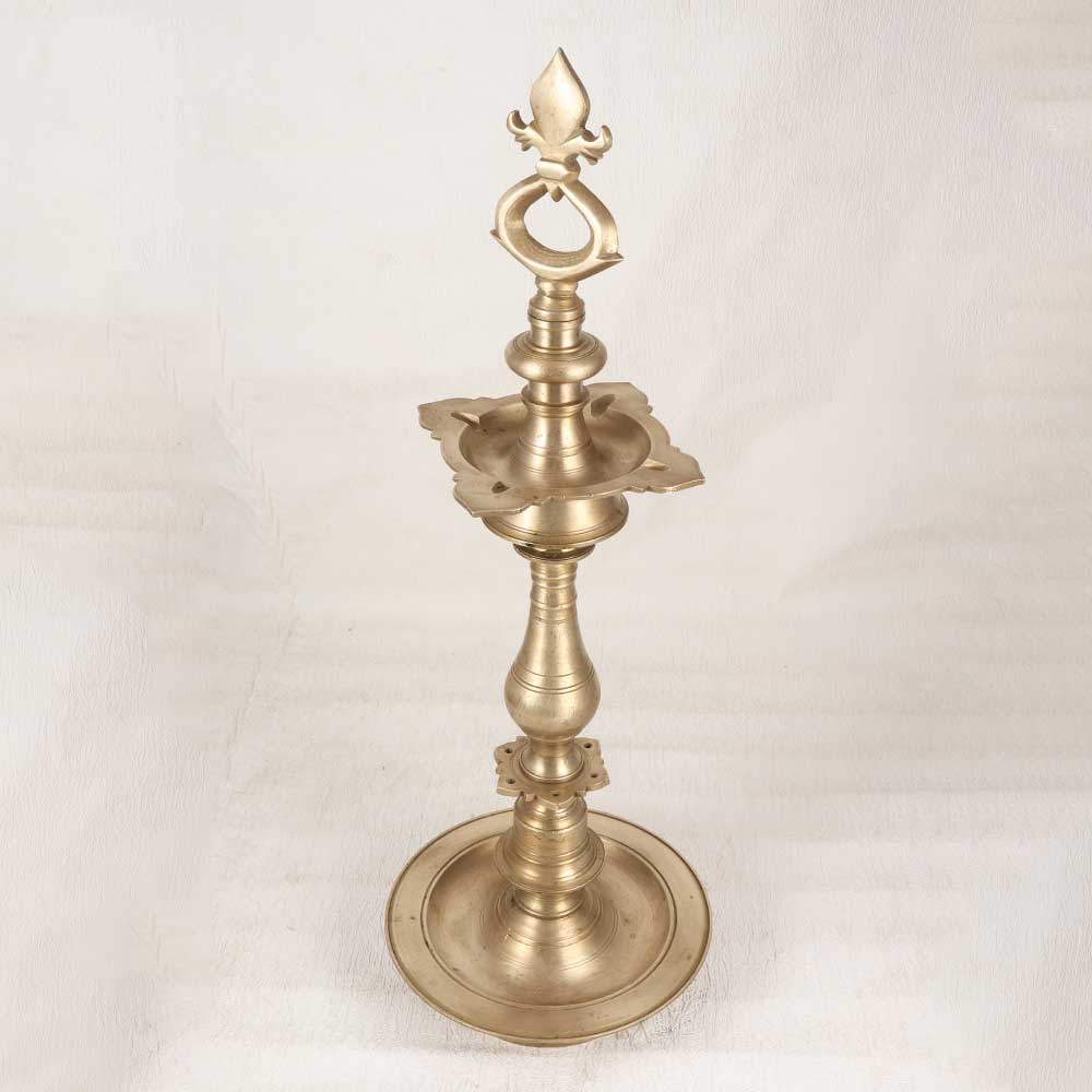 Light up your home with the warm glow of nostalgia. This vintage brass oil lamp features intricate floral engravings and 4 jyots for ample illumination. Fueled by mustard oil or desi ghee, it conjures memories of gatherings with loved ones. Recall evenings filled with laughter, card games, and stories when the family would gather around the oil lamp. The soft, flickering light sets a cozy mood, while the brass warms the space. Place it on the dining table when hosting guests or use it to light up your puja room. This lamp also makes a meaningful housewarming or wedding gift. Bring back the nostalgic glow of simpler times with this beautiful handcrafted brass oil lamp. It's elegant design and warm light will make any occasion more special.